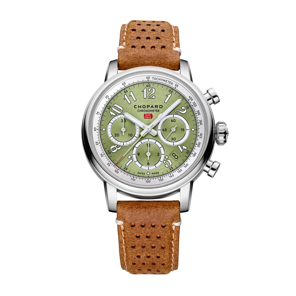 萧邦的Mille Miglia系列是对自1927年以来在横跨意大利的1000英里路线上举行的传奇老爷车比赛的庆祝。自1988年以来,萧邦一直是该赛事的官方合作伙伴和计时器,该系列以其名字命名,是对其融合机械、优雅和性能的 致敬。