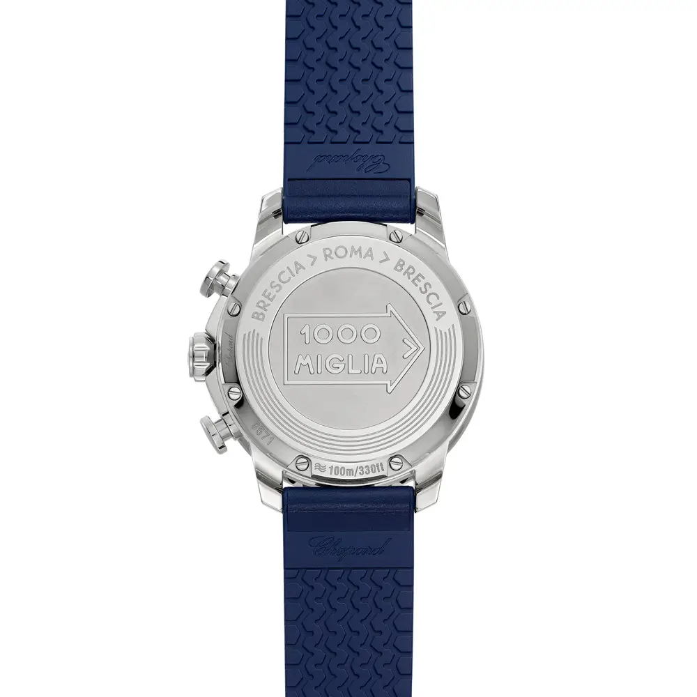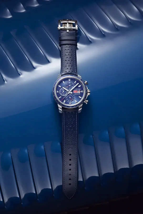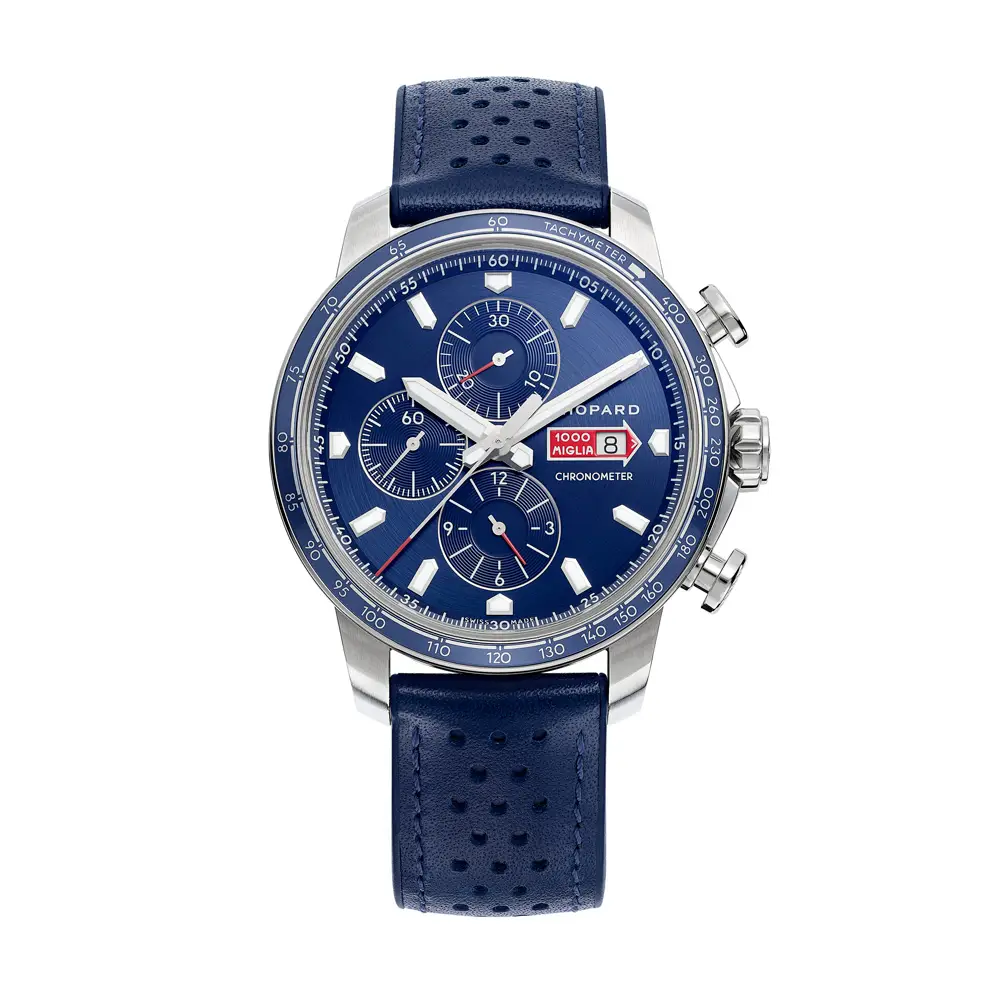 Chopard Mille Miglia GT Azzurro Chrono 是一款专为追求赛车传承、奢华设计与瑞士尖端技术的现代男士打造的腕表。