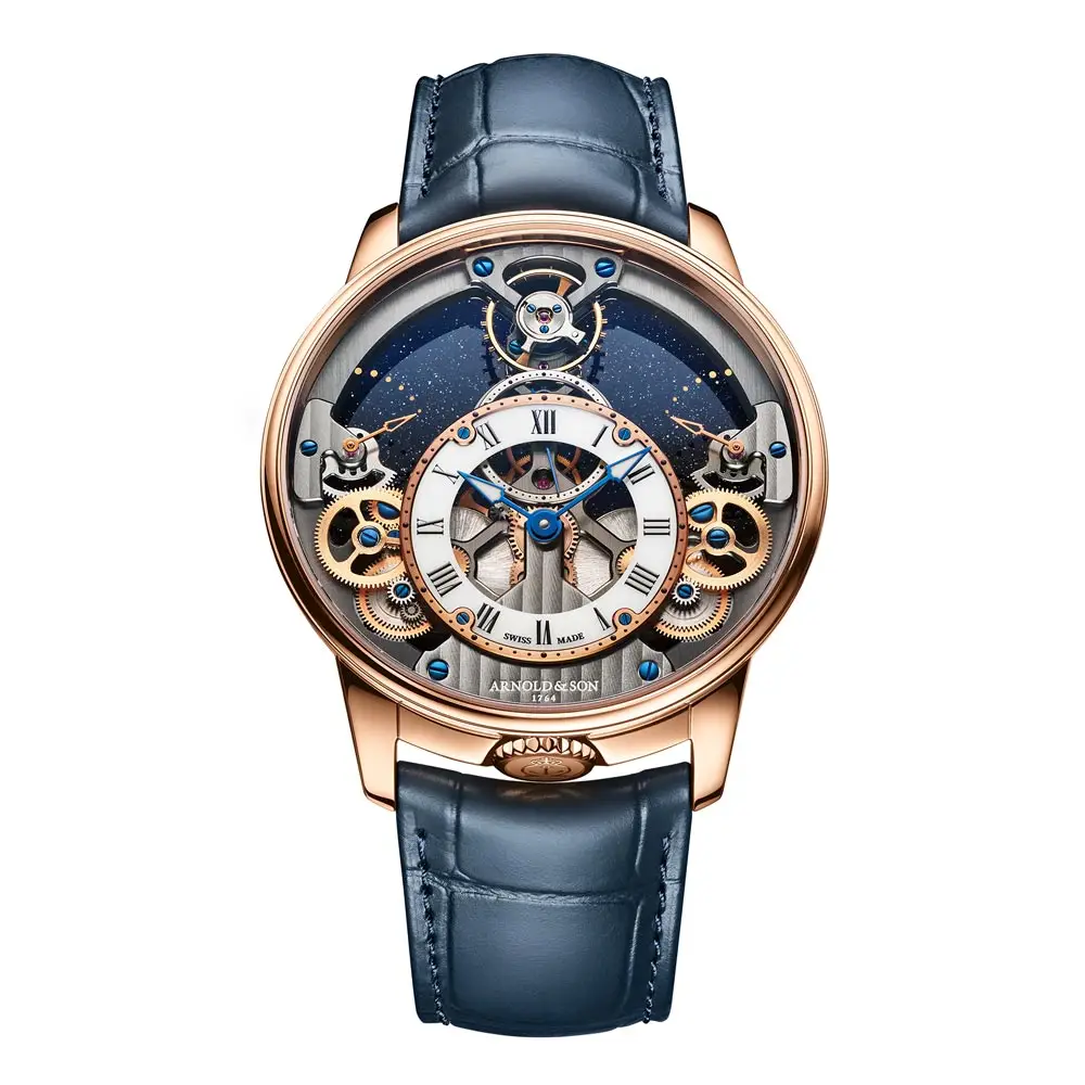 Arnold & Son(亚诺表)以独家制造的复杂机芯而闻名。在该品牌的产品组合中,你会发现带有月相指示、双时区、陀飞轮或镂空的迷人表款。每款腕表不仅是技术上的瑰宝,也是高级制表工艺的美学体现。