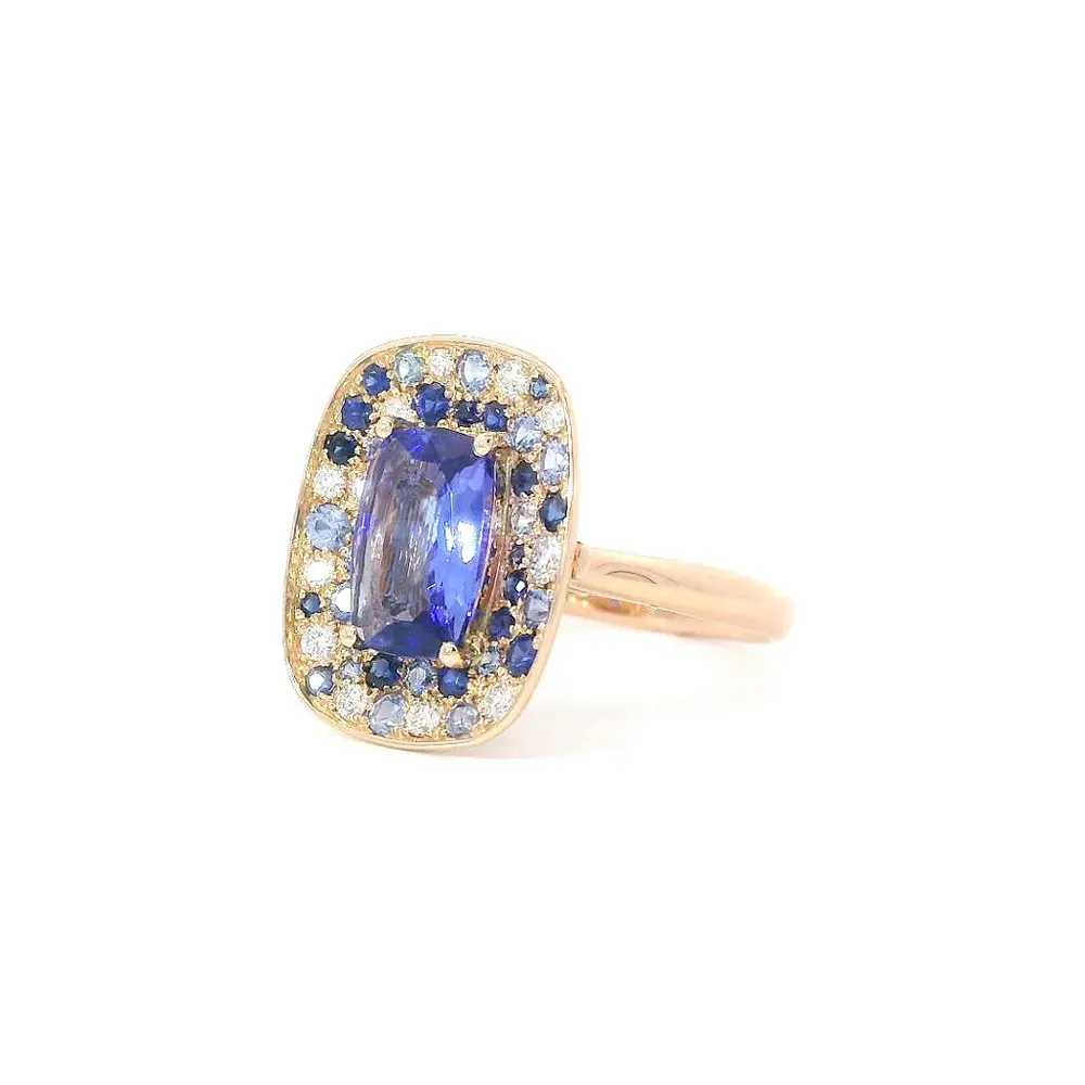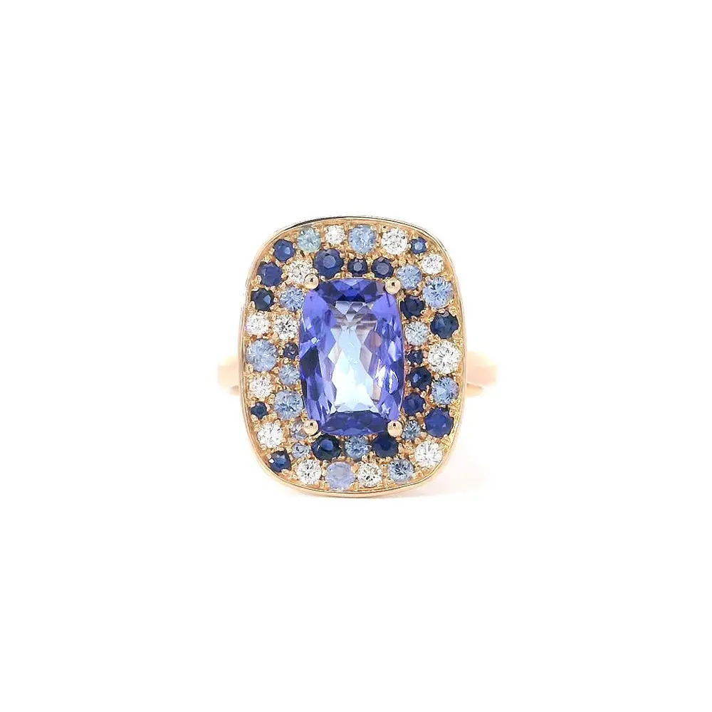坦桑石、蓝宝石与钻石在玫瑰金中的缤纷和谐