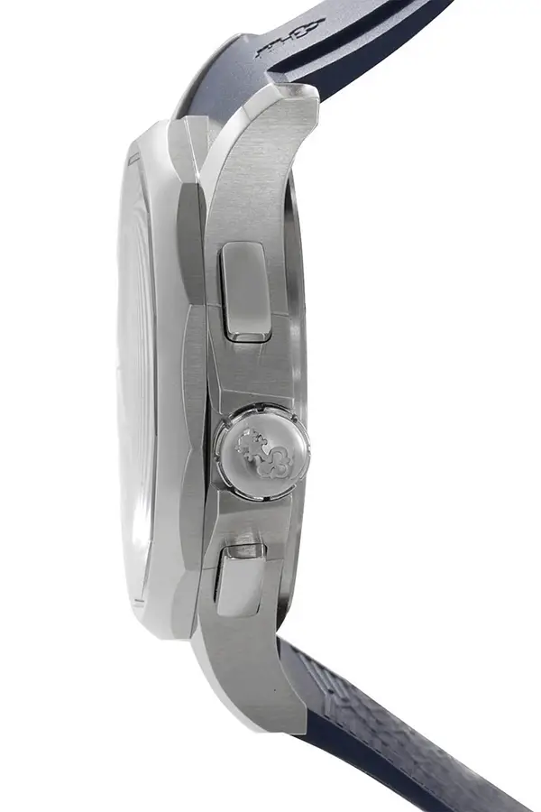 防水 5 ATM / 50 米,适合日常佩戴与休闲活动。整体运动风格由 时尚蓝色橡胶表带 完成,并搭配 实用折叠扣,佩戴舒适安全。
