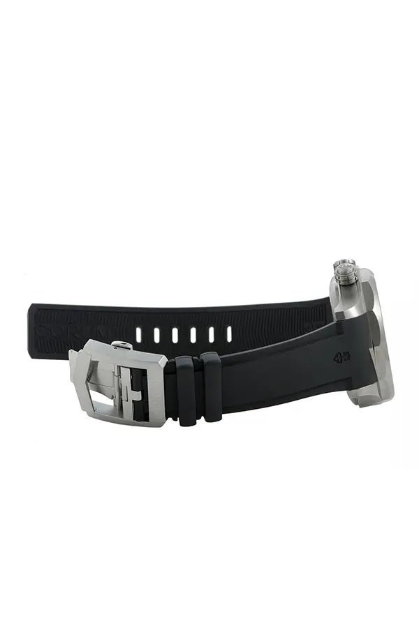 防水 10 ATM / 100 米,适合水边休闲活动。运动感更通过 黑色橡胶表带 强调,佩戴舒适并配有 实用折叠扣,确保安全。