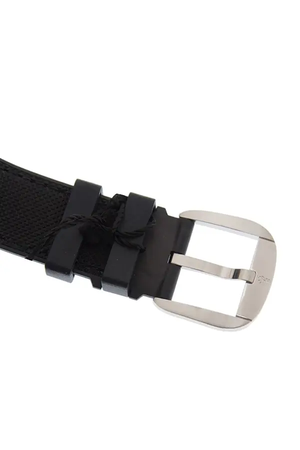 腕表 防水 5 ATM / 50 米,适合日常佩戴。搭配 黑色皮革表带 和 经典针扣,佩戴舒适安全。