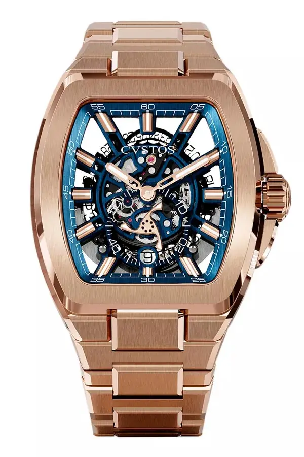 CVSTOS Metropolitan PS 5N Red Gold SQLT Blue 是为那些追求不凡、欣赏创造力与极致优雅的人而打造的时计 —— 一枚不只记录时间,更讲述故事的腕表。