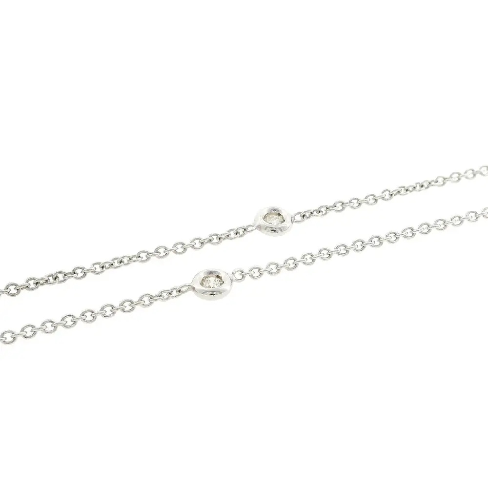 这款优雅的钻石项链以精致而经典的设计展现出迷人的魅力。项链镶嵌总重0.14克拉的天然钻石,钻石均匀分布在链条上,在每一次移动时都散发出细腻闪耀的光芒。简约而优雅的设计使其能够轻松搭配其他珠宝。