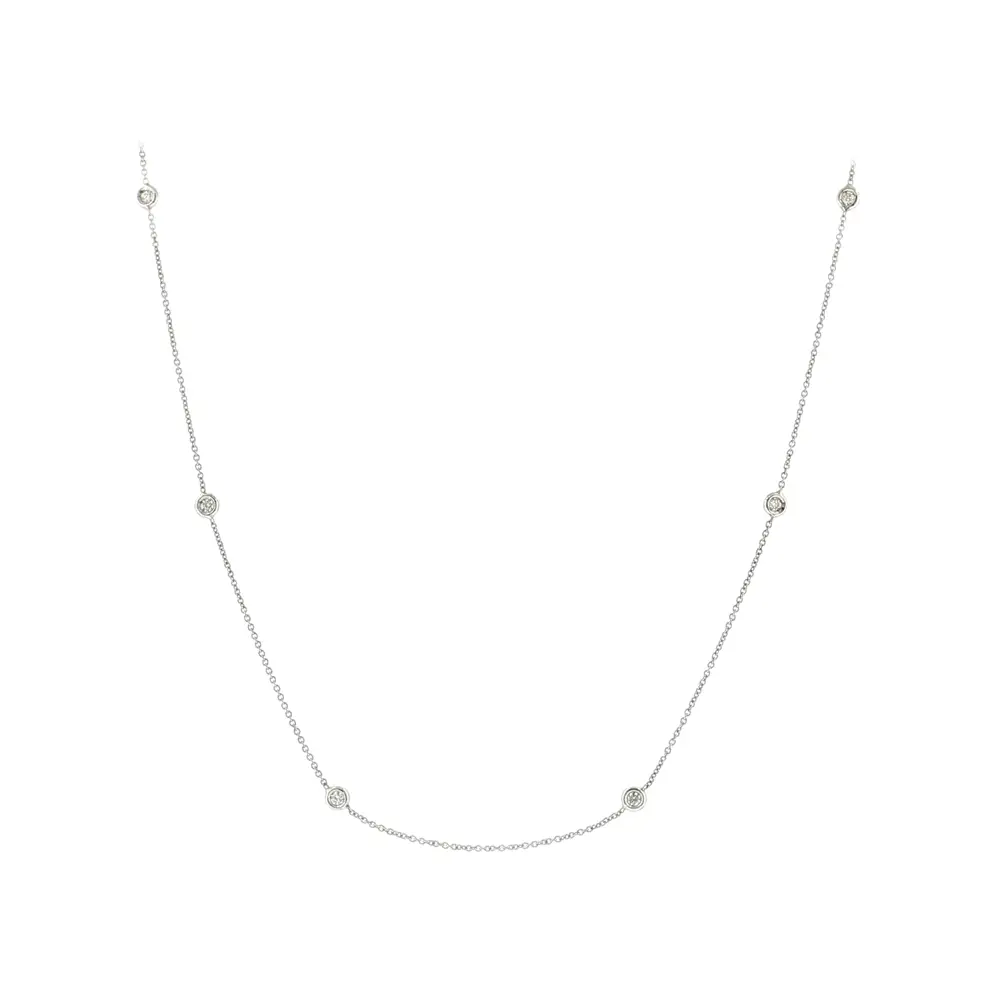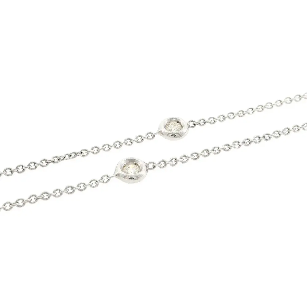 这款优雅的钻石项链以精致而经典的设计展现出迷人的魅力。项链镶嵌总重0.25克拉的天然钻石,钻石均匀分布在链条上,在每一次移动时都散发出细腻闪耀的光芒。简约的设计既优雅又百搭,可轻松搭配其他珠宝。