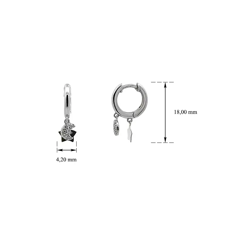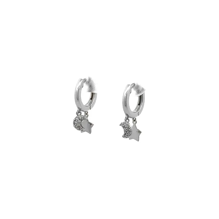 白金新月与星星耳环