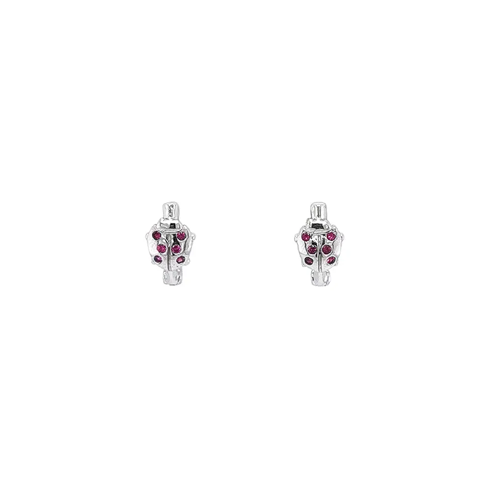 瓢虫造型耳环,镶红色水钻