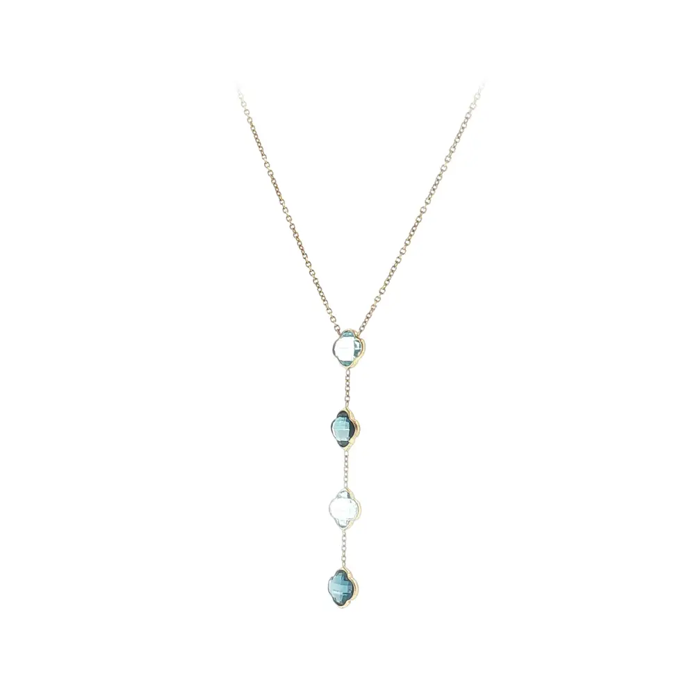 细致的链条搭配蓝色宝石吊坠设计,优雅修饰颈部线条,为整体造型增添女性魅力。经典金色与清新蓝色的结合,打造和谐美观的效果。