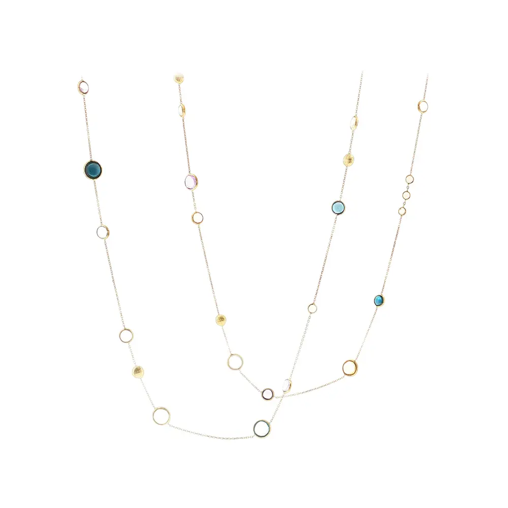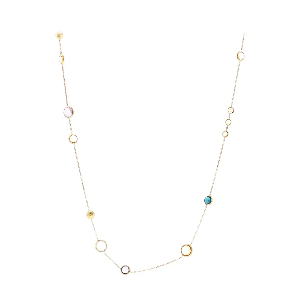 这款优雅的14K金项链搭配彩色宝石,以其精致与经典设计脱颖而出。多种色彩的组合营造出俏皮又优雅的效果,适合日常佩戴及特殊场合。
