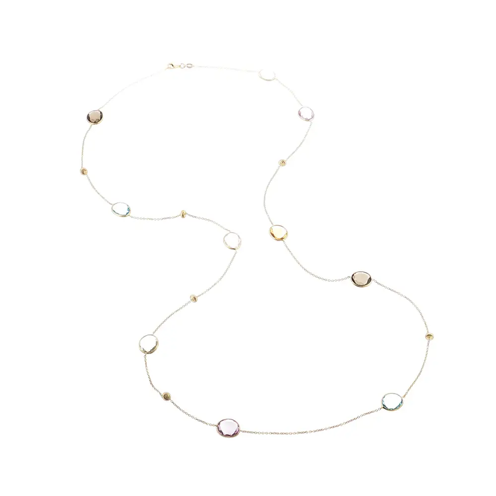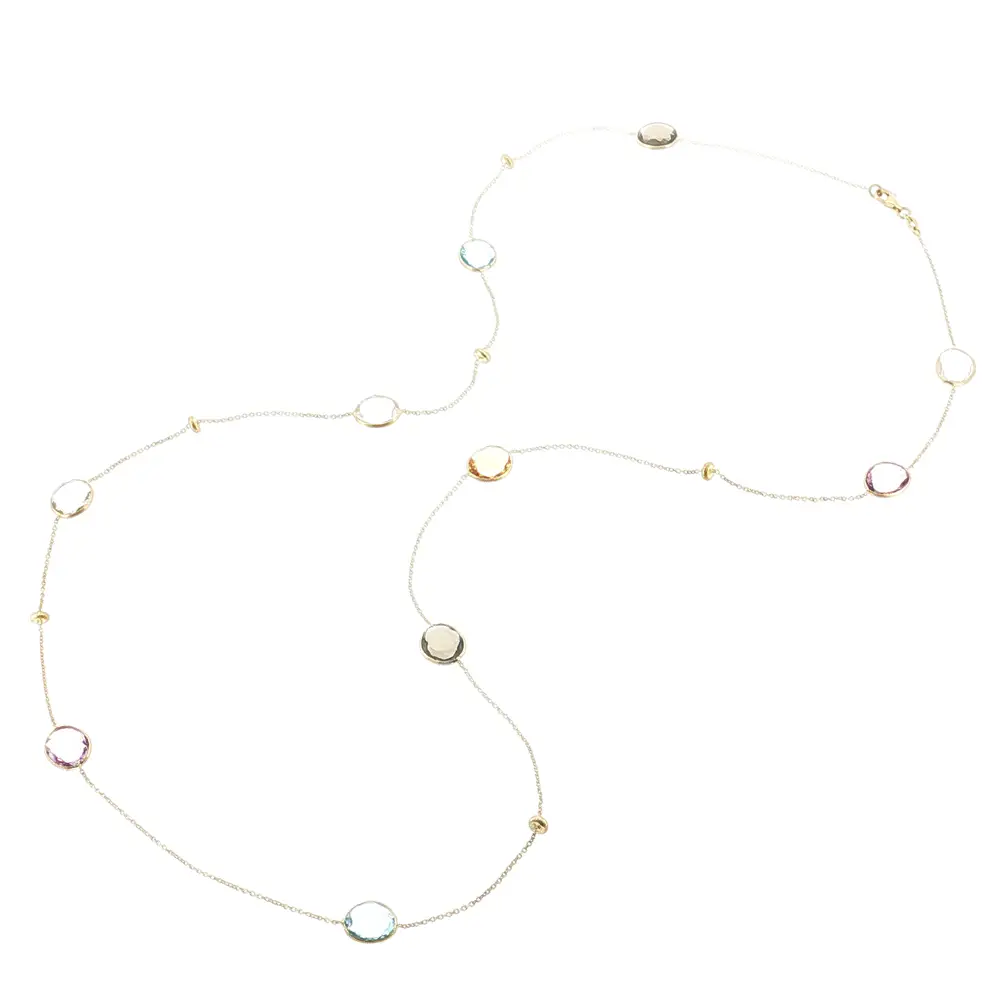 这款多彩宝石金项链既是时尚配饰,也是理想礼物。优质工艺与真金材质确保其耐用性与持久光泽。