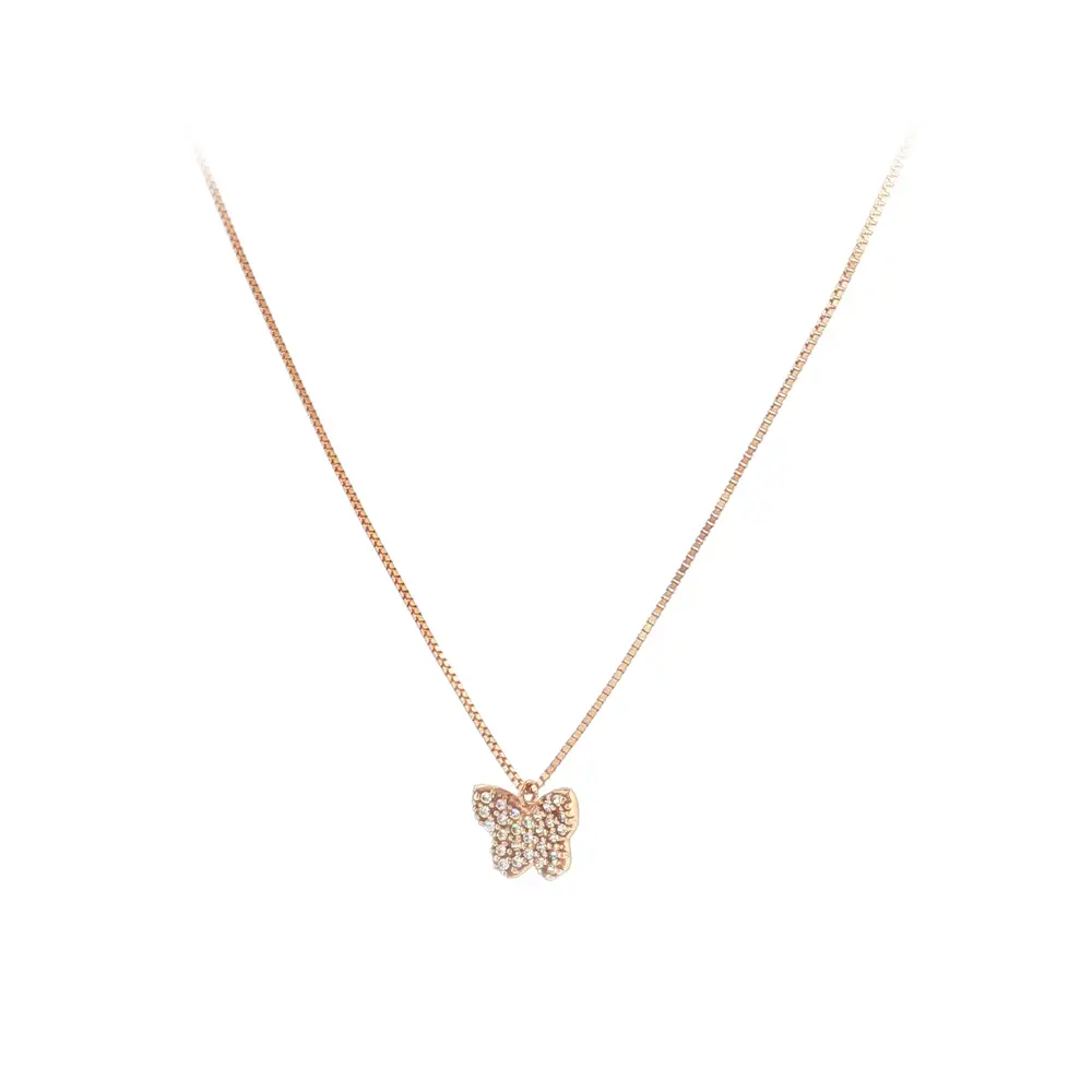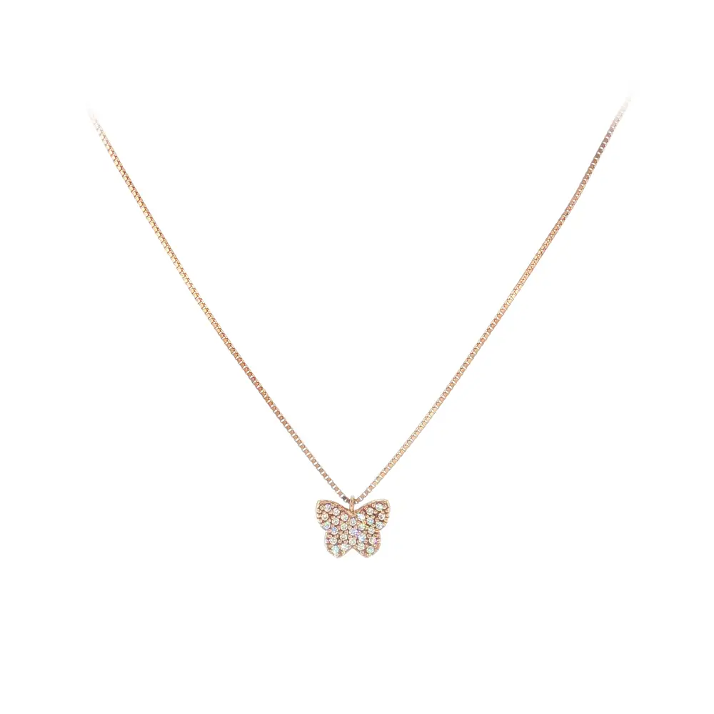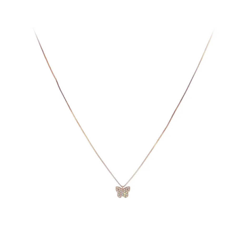 这款优雅的玫瑰金蝴蝶项链以其精致设计和细腻工艺令人一见倾心。吊坠镶嵌闪耀锆石,在光线下熠熠生辉,展现奢华气质,适合日常佩戴及重要场合。