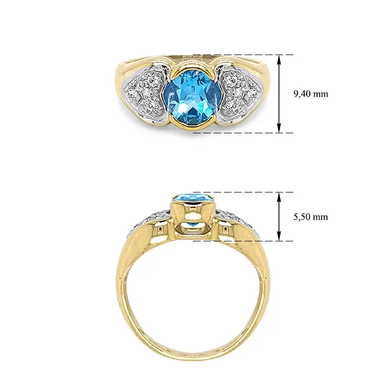 独家黄金蓝色托帕石锆石戒指