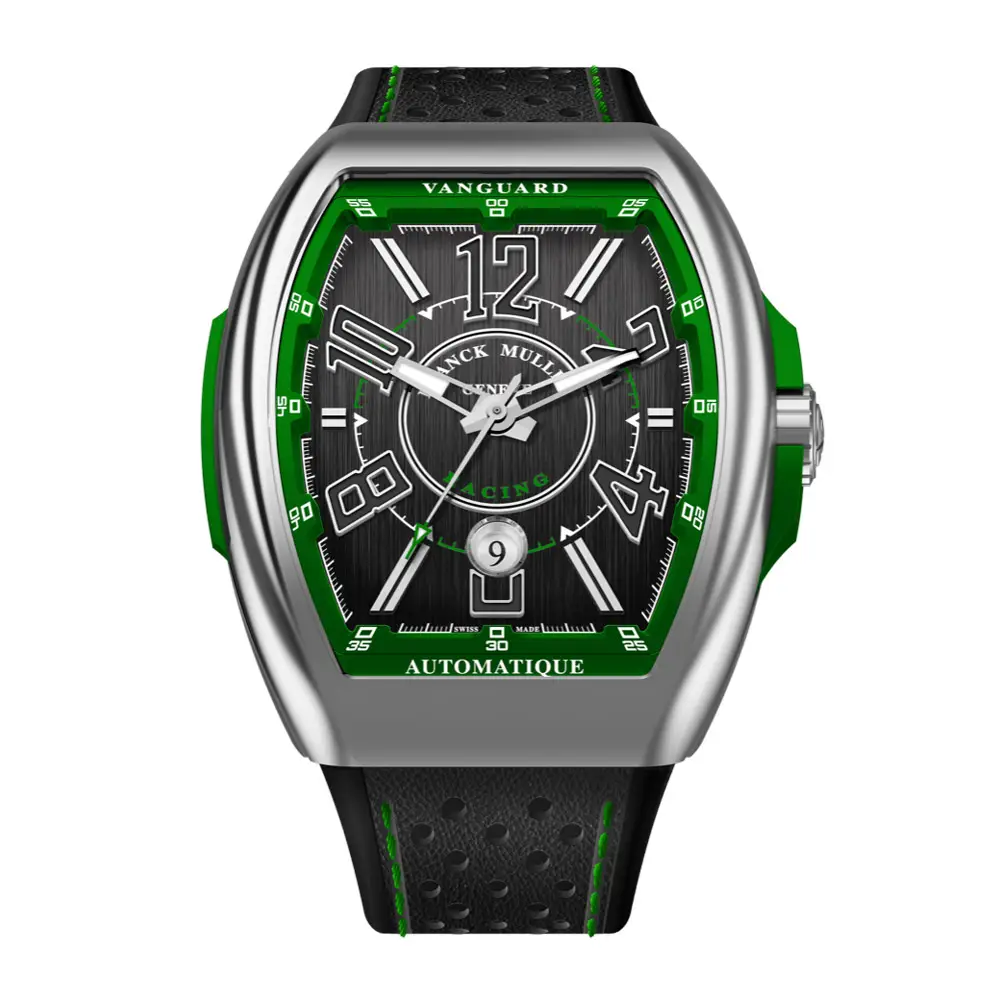 Franck Muller Vanguard Racing 以赛车运动为灵感,呈现出鲜明的运动属性与现代风格。标志性的酒桶形表壳搭配协调比例,展现优雅与动感并存的气质。