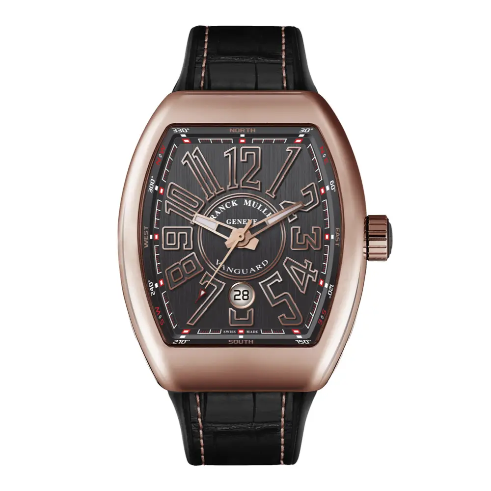 Vanguard是Franck Muller的现代动感系列,结合了运动感与前卫设计。它的特点是独特的酒桶形轮廓、流畅的线条和坚固的表壳,看起来庞大而优雅,符合人体工程学。