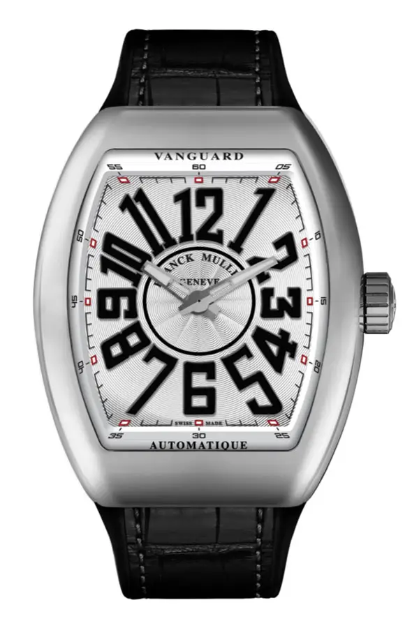 大号数字、独特指针、运动型橡胶或织物表带以及镂空表盘等设计元素赋予了 Vanguard 系列独特而现代的外观。腕表通常包括计时码表、陀飞轮或自动日历 机芯等复杂功能,全部由Franck Muller自制的机械机芯驱动。