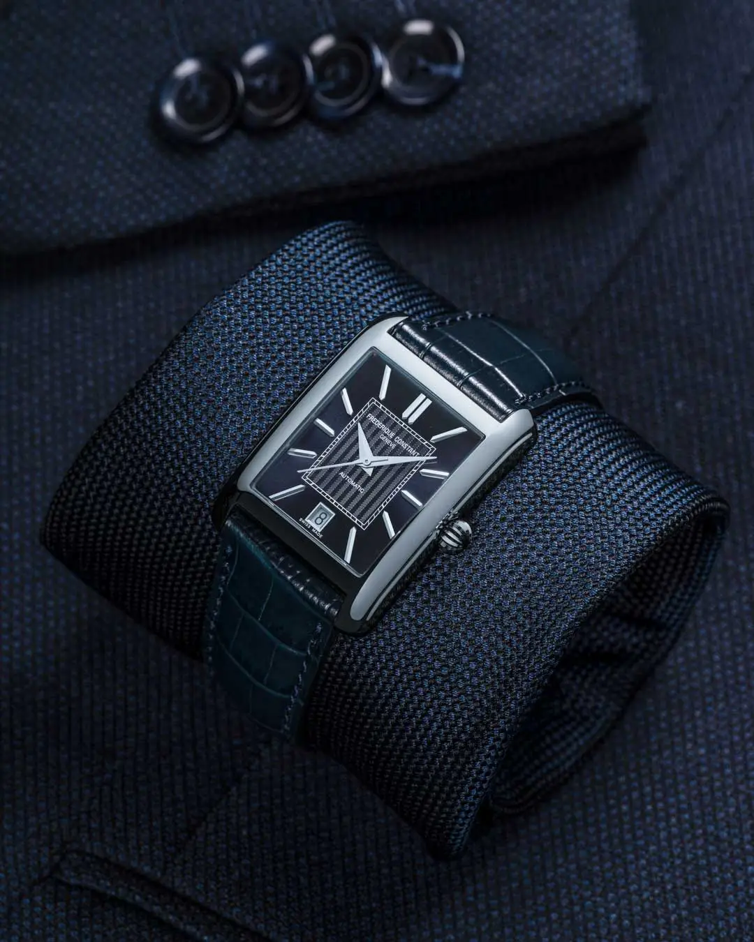 弗雷德里克•康斯坦(Frederique Constant)手表是一款优雅精致的配饰,以其奢华的工艺和精致的设计而著称。它们具有独特现代的长方形表壳。表壳由优质不锈钢制成,确保了手表的耐用性和持久性。