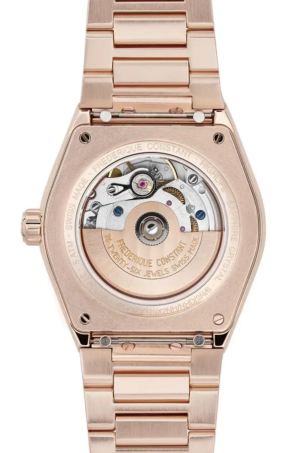 Frédérique Constant Highlife Ladies Automatic FC-303VD2NHD4B 是一款融合了 优雅设计 与 瑞士精湛工艺 的奢华女表。34 毫米不锈钢表壳 配以 玫瑰金镀层,尽显女性魅力,表圈镶嵌 璀璨钻石,更添华丽。银色表盘搭配钻石时标,彰显高贵与独特品味。