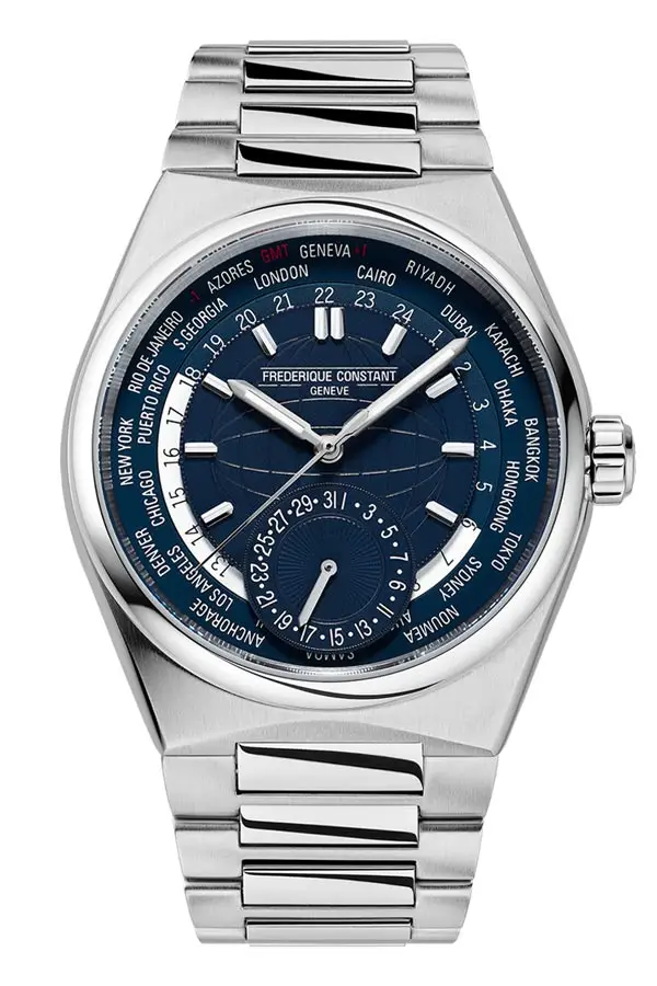 Frederique Constant Highlife Worldtimer FC-718N4NH6B 是一款结合瑞士制表工艺与多时区功能的高端男士腕表,专为经常出差或环游世界的男士打造。