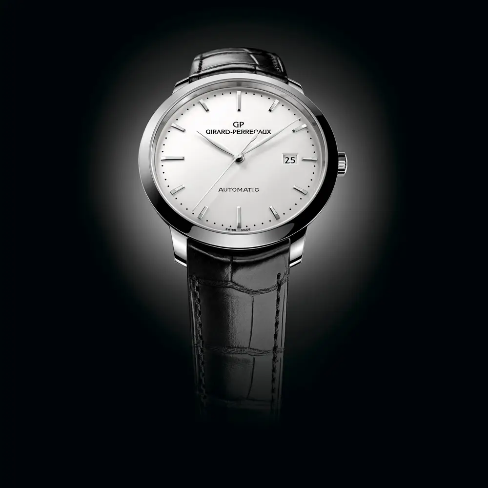 Girard-Perregaux 1966 腕表是一款优雅型号,体现永恒美学与瑞士精准工艺。直径40毫米的经典圆形表壳采用高品质精钢制成,搭配 坚固的蓝宝石水晶玻璃,确保优异可读性并防刮耐磨。