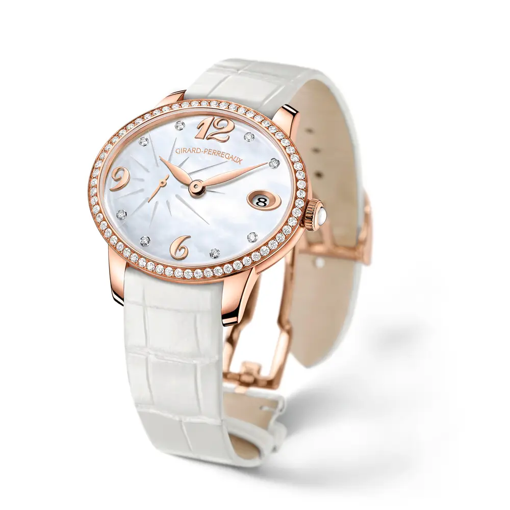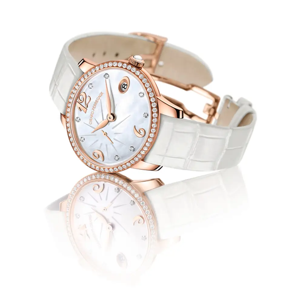 Cat's Eye是Girard-Perregaux 著名的女装系列,将精致美学与高级制表工艺完美结合。其独特之处在于轻轻拉伸的椭圆形表壳,让人联想到猫眼的形状,这也是该系列名称的由来。这种优雅的设计以其女性化、优雅和独特的魅力脱颖而出。