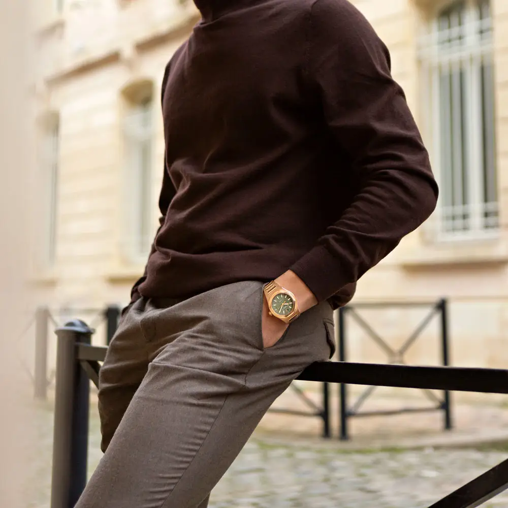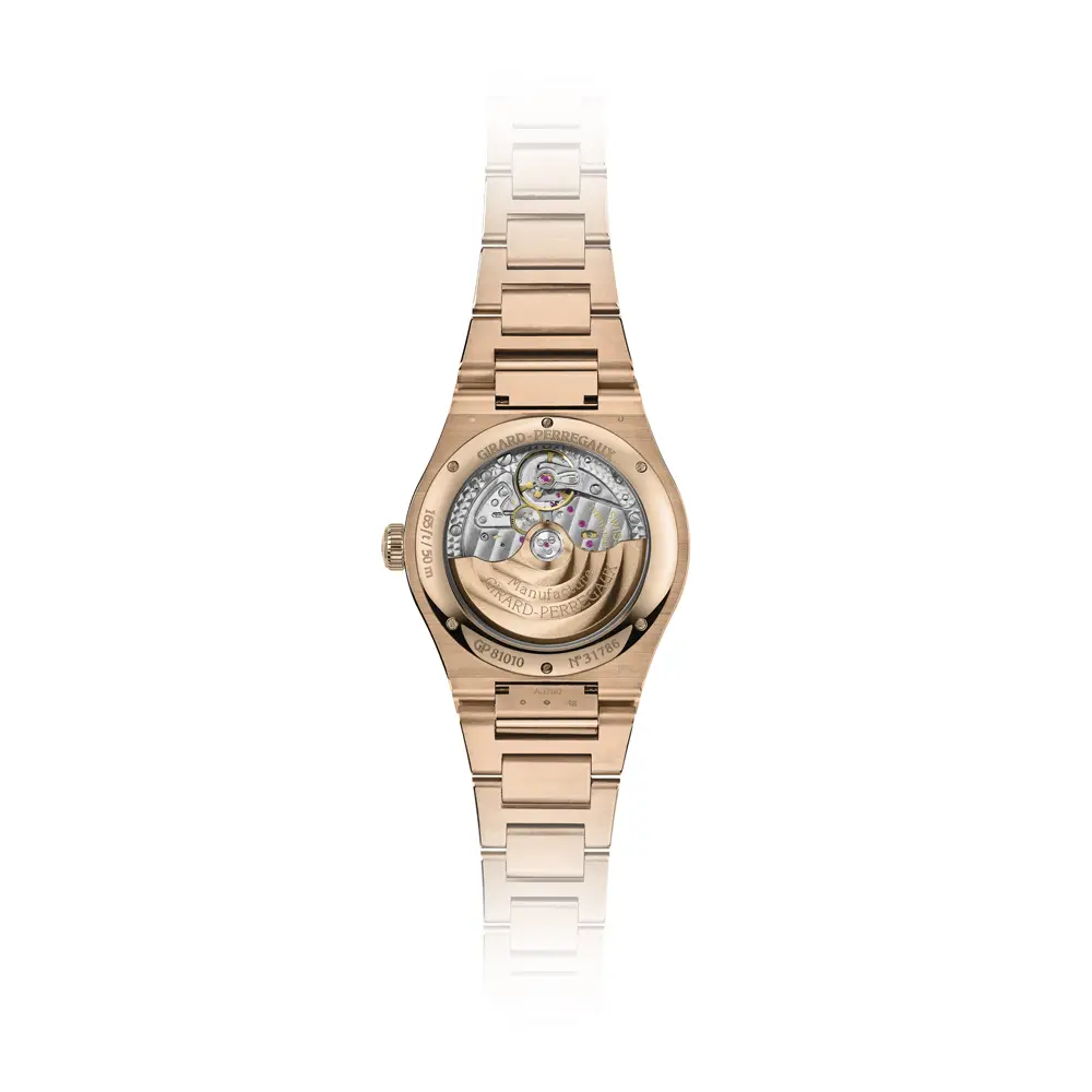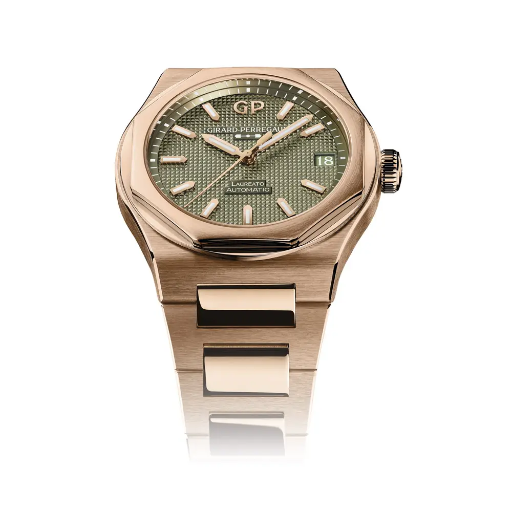 Girard-Perregaux Laureato 42mm 腕表以精致设计和卓越工艺脱颖而出,深受奢华爱好者青睐。直径42毫米的圆形表壳采用独特的18K玫瑰金制成,优雅的表圈与一体式玫瑰金表链同样采用此材质,与整体外观完美协调。