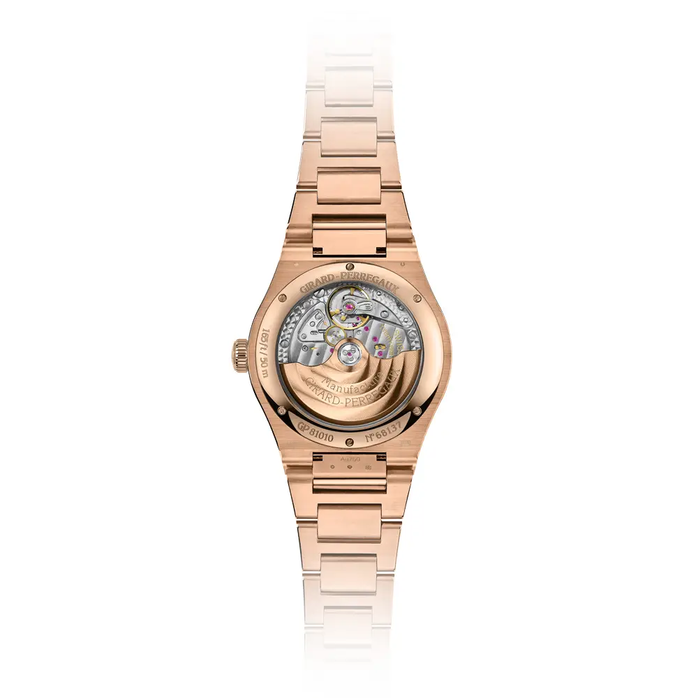 Girard-Perregaux Laureato 42mm 腕表是奢华、优雅与瑞士精湛工艺的完美象征。直径42毫米的圆形表壳由独特的18K玫瑰金打造,优雅的表圈和表链同样采用玫瑰金材质,营造出和谐且精致的外观。