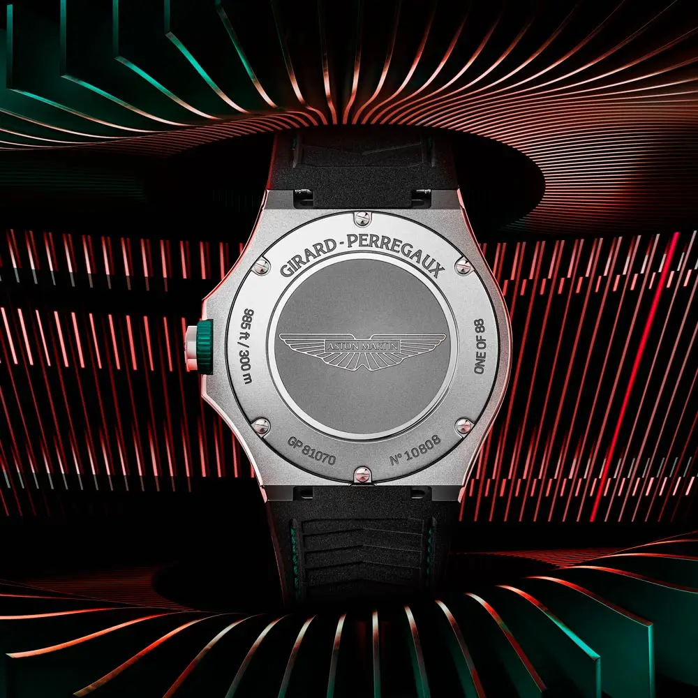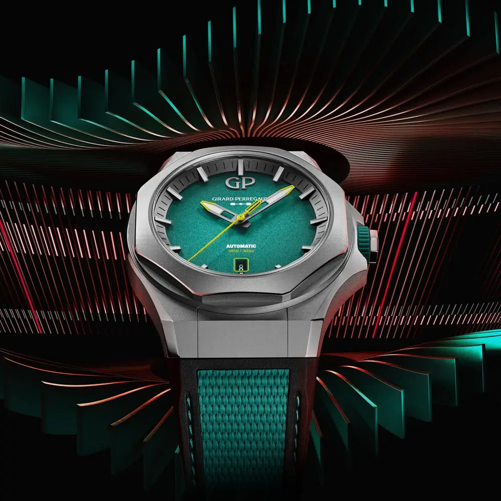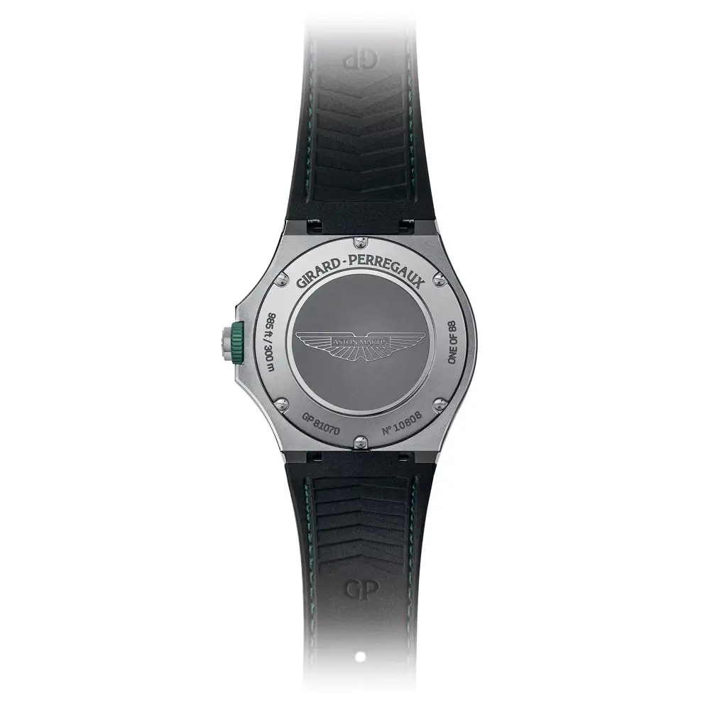 Girard-Perregaux Laureato Absolute Aston Martin F1® Edition (ref. 81070-21-3405-1CX) 将 瑞士制表工艺与英国赛车工程精神 完美融合。这款 全球限量 88 枚 的腕表致敬赛车世界,融合技术创新与 Aston Martin 的优雅设计。