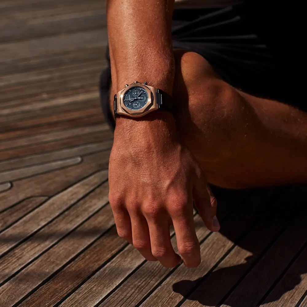 其独特之处在于一体化表链和圆形表圈上镶嵌的标志性八角形月牙形装饰--几何形状的和谐组合赋予腕表永恒而动感的外观。表盘上通常装饰有Clous de Paris图案,表款包括三针自动表、计时码表以及陀飞轮或万年历等复杂功能表。