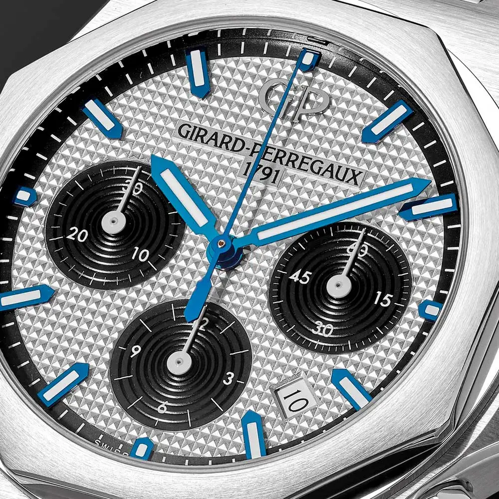 Girard-Perregaux Laureato Chronograph 42 mm(参考编号 81020-11-131-11A) 完美融合了 运动优雅与瑞士精准。灵感源自 1975 年的经典设计,这款现代版 Laureato 呈现出永恒而自信的气质。