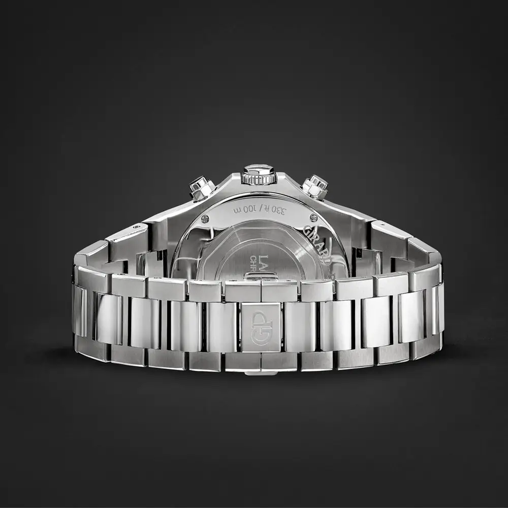 Girard-Perregaux Laureato Chronograph 腕表是运动优雅与瑞士精准工艺的完美结合。直径42毫米的圆形表壳采用优质精钢制成,并配有 坚固的蓝宝石水晶玻璃,确保出色的可读性和防护。