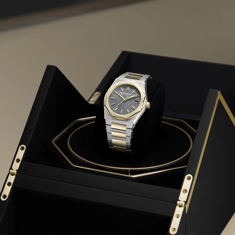 这款 Laureato 50周年纪念版 致敬芝柏表的标志性设计,融合精准制表与永恒美学。腕表直径 39 毫米,采用 精钢与 18K 黄金 双金属表壳搭配 双色一体化表链 与 八角形表圈,展现出力量与优雅的完美平衡。