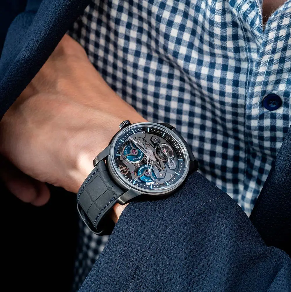 配备 黑色鳄鱼皮表带与钛金属折叠扣,具备 30 米防水性能 (3 bar),Neo Bridges Earth to Sky Edition 是专为追求 创新、轻盈与技术完美 的鉴赏家打造的腕表。