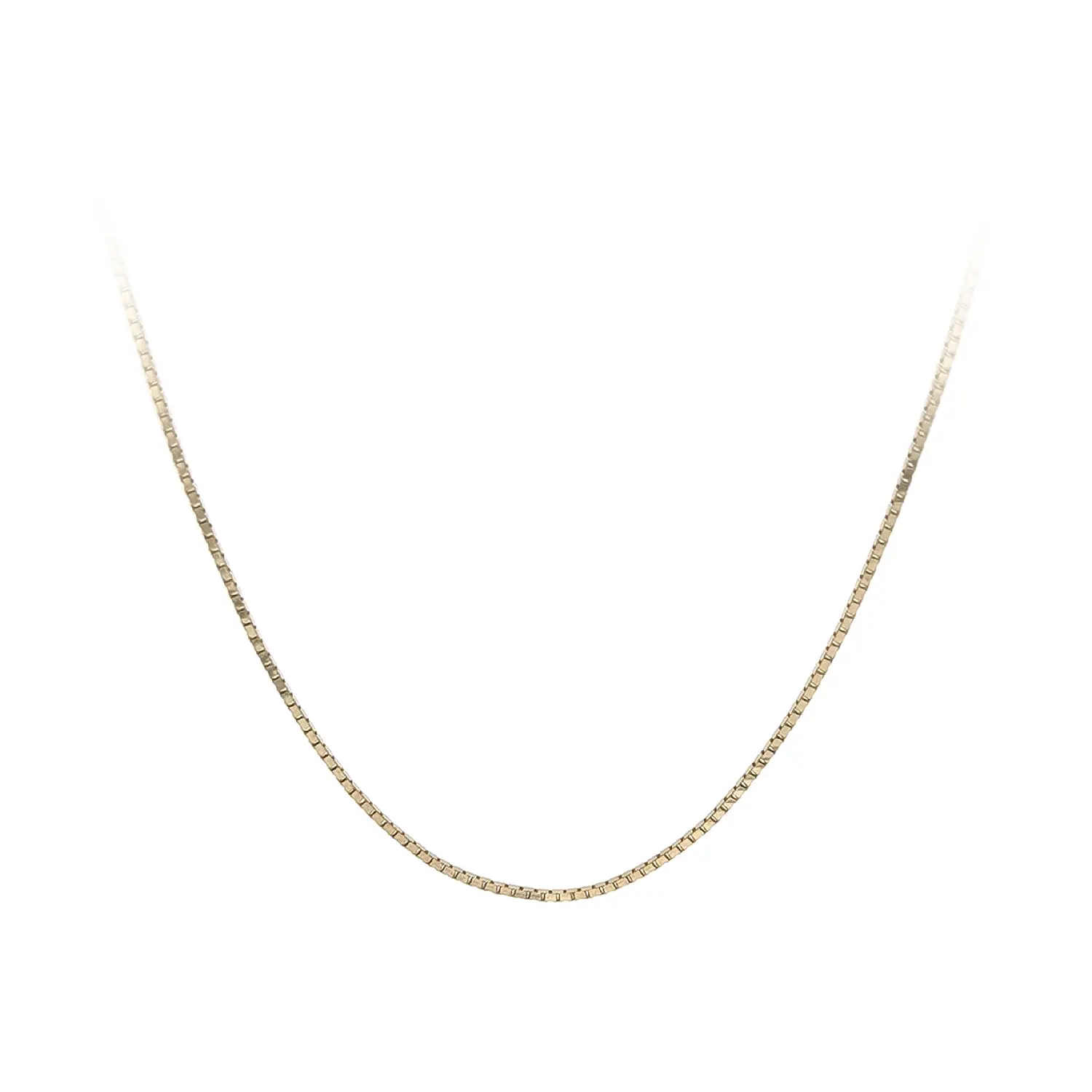 Box 款黄金项链采用规则方形链节设计,呈现干净利落的现代外观。几何结构赋予项链优雅光泽与经典气质,既可单独佩戴,也适合搭配精致吊坠。