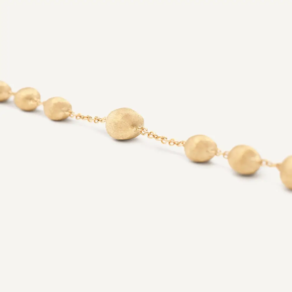 Marco Bicego Africa BB2830 Y 黄金手链展现了永恒的优雅与精湛的工艺。采用 18K (750/1000) 黄色黄金制作,长度为 16 厘米,佩戴舒适且贴合手腕。每个细节都经过精雕细琢,从手工雕刻到柔和的金色光泽,尽显匠心独运。