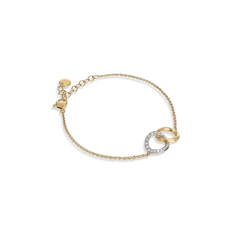 Marco Bicego BB1803 B YW 手链完美结合了极简设计与自然奢华。采用 18K (750/1000) 混合黄金 制作,融合黄金沙调与白金光泽,表面经过 镜面抛光 处理,呈现高贵亮泽。长度 15 cm,佩戴舒适精致,凸显手腕优雅线条。
