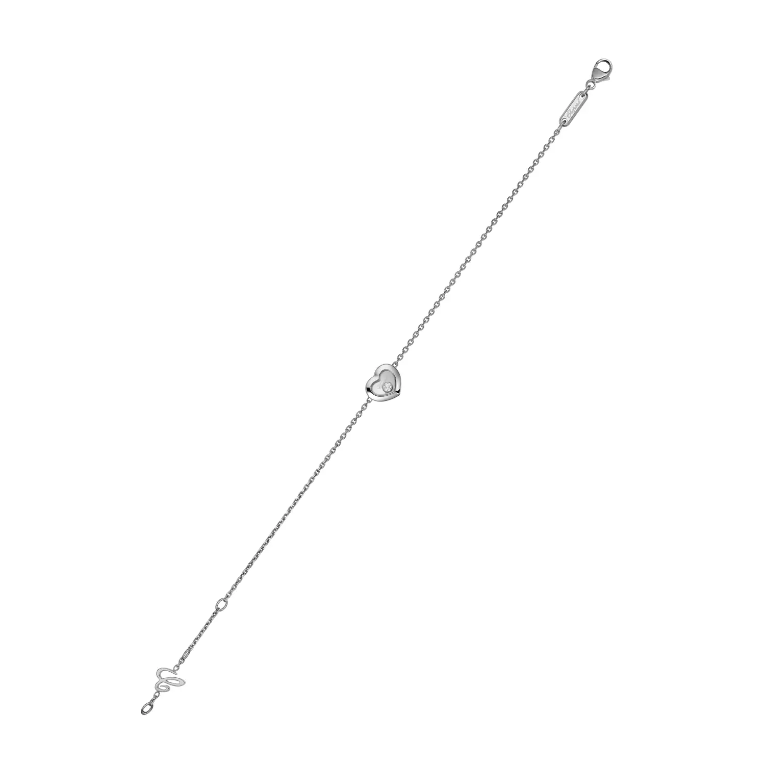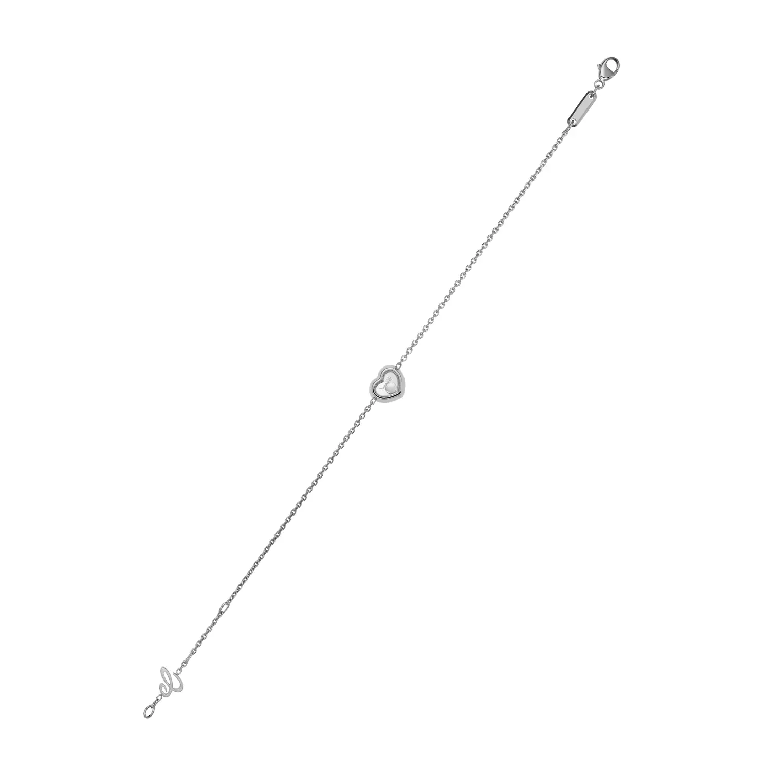这款来自 Happy Diamonds Icons 系列的手链,完美诠释了 喜悦、轻盈与女性优雅。采用 18 K 白金 精制,饰以一颗 约 0.05 克拉自由旋转的钻石,被封装于两片蓝宝石水晶之间,捕捉每一次动作的光影律动,展现自由与幸福的闪耀。