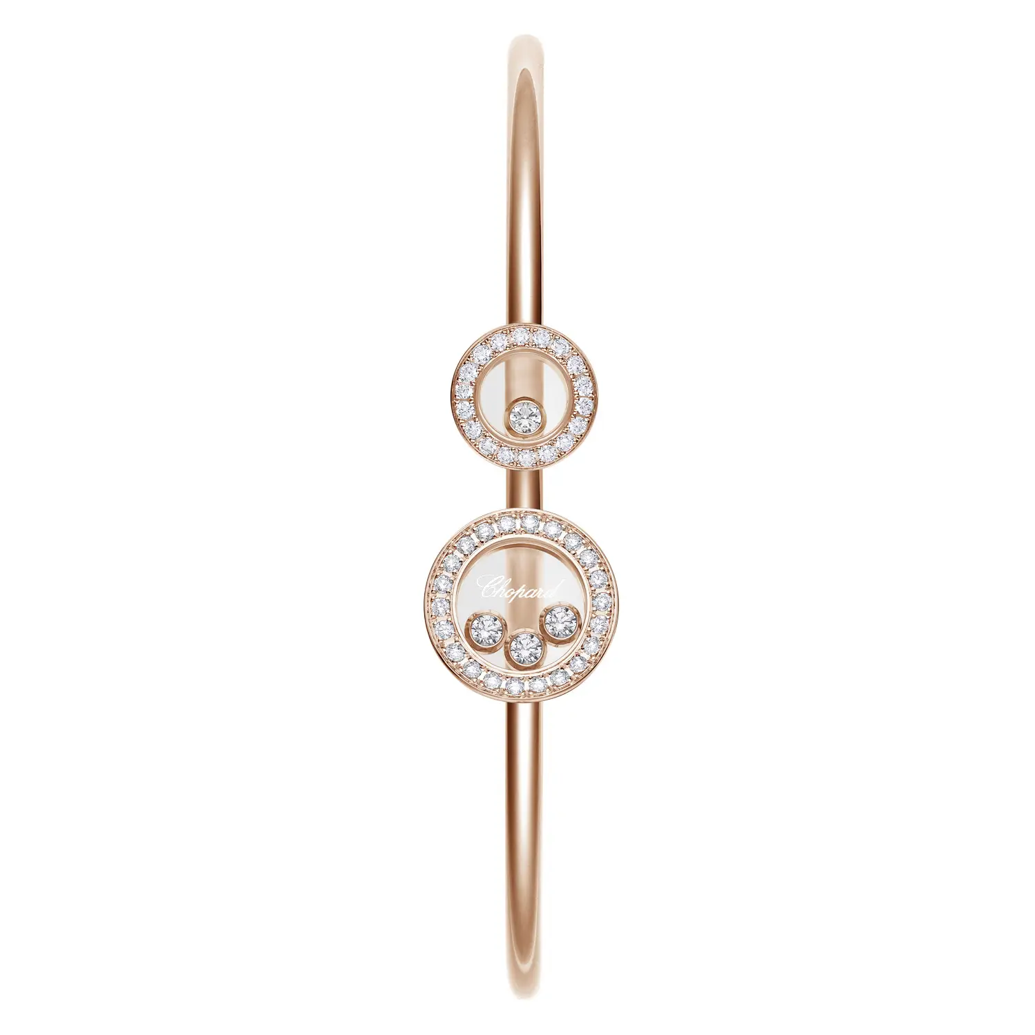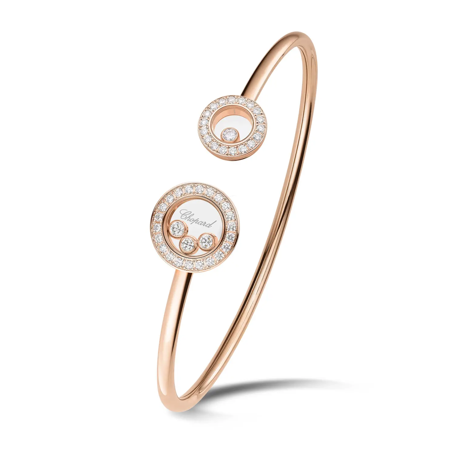 这款来自 Happy Diamonds 系列的手镯,完美融合 优雅、灵动与精湛工艺。采用 18 K 玫瑰金 精制,镶嵌 44 颗总重约 0.54 克拉的圆形明亮式切割钻石,每颗钻石都在光影中闪耀,展现出轻盈而迷人的光彩。