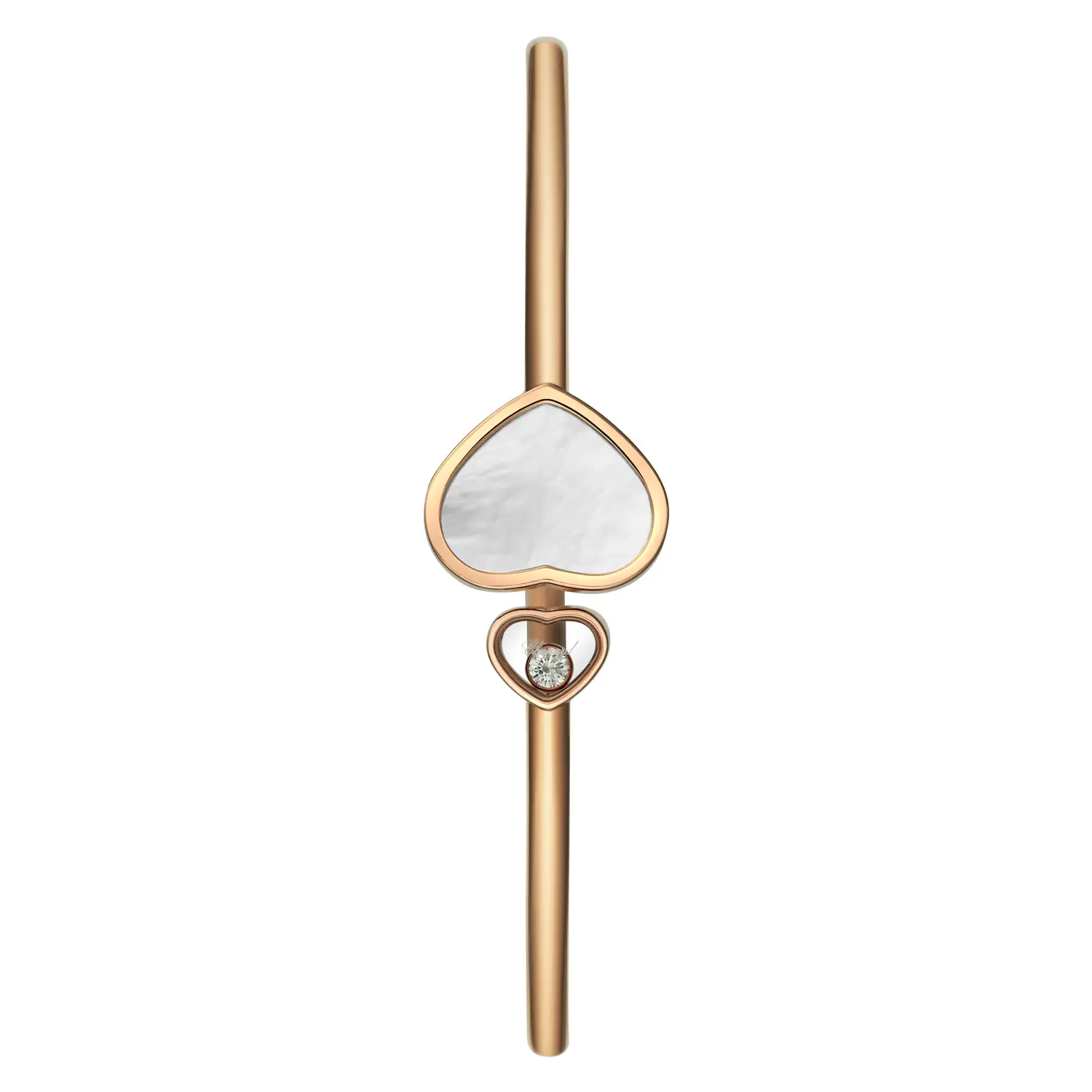 萧邦 Chopard Happy Hearts 857482-5302 手链象征 喜悦、爱与女性魅力,是 Happy Hearts 系列的经典之作。采用 18K 道德玫瑰金 制成,饰以 珍珠母贝心形图案 与 0.05 克拉钻石,散发柔和而高雅的光彩。