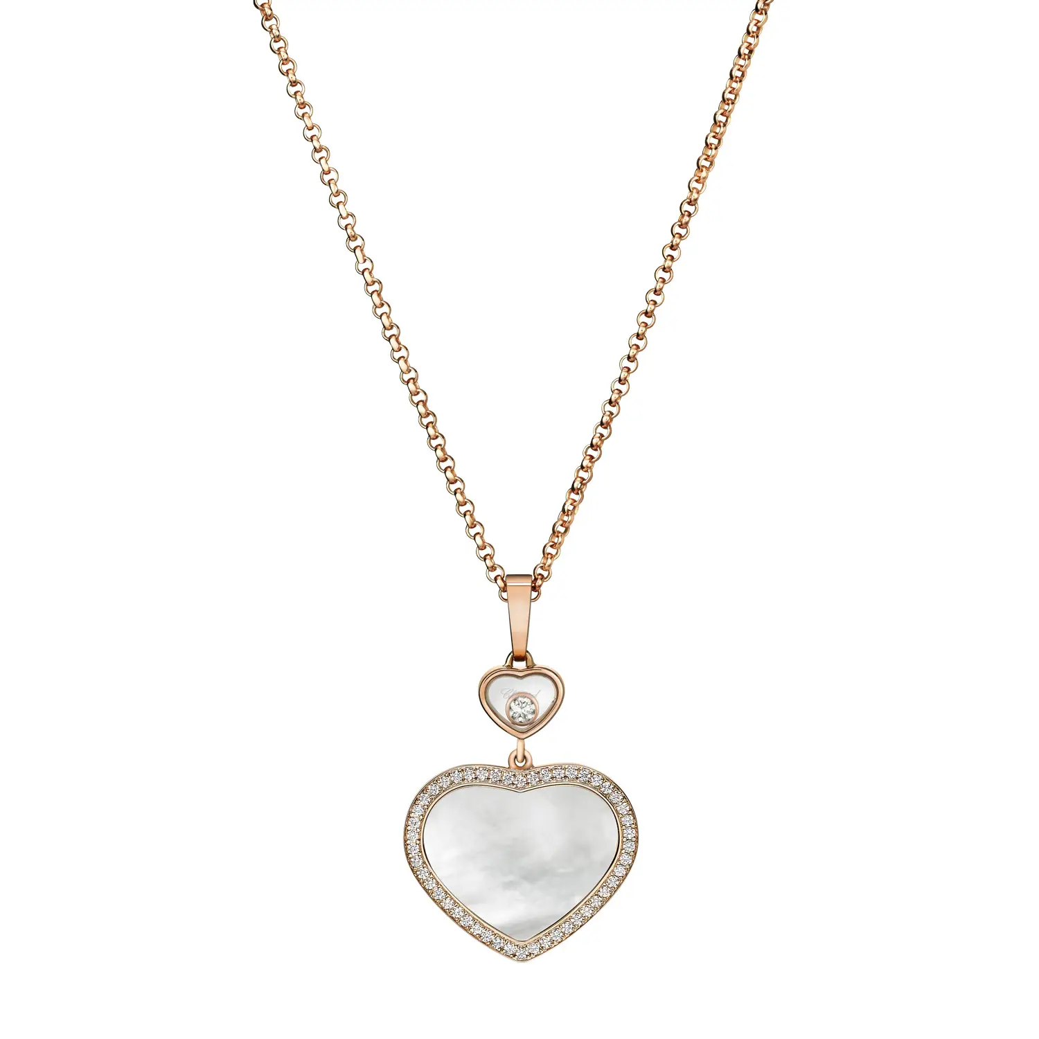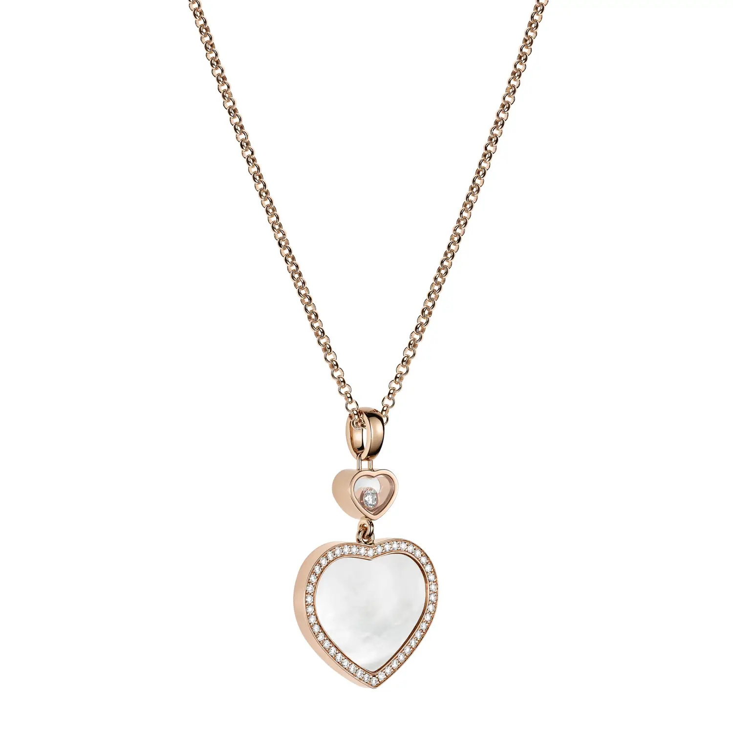 Chopard Happy Hearts 项链 79A074-5301 是 珠宝优雅的杰作,在这里浪漫的心形符号与奢华的璀璨光芒交相辉映。由 18K 玫瑰金 (750/1000) 制成,并经过精细抛光处理,这款项链展现出柔美与女性魅力。