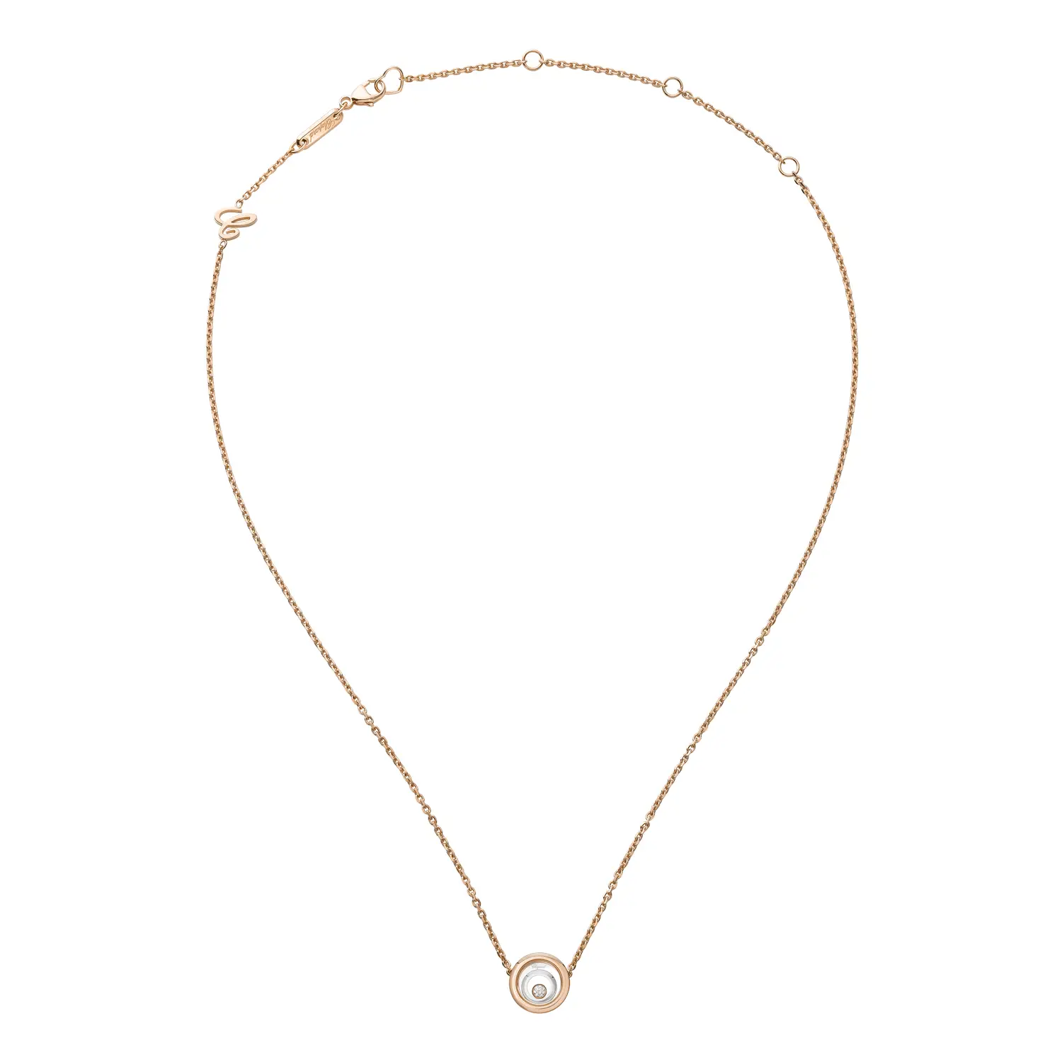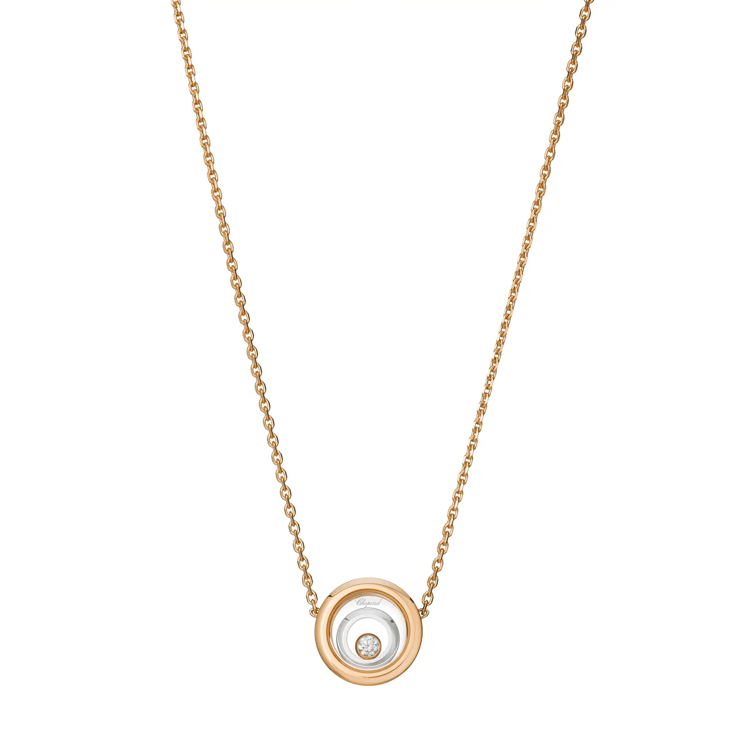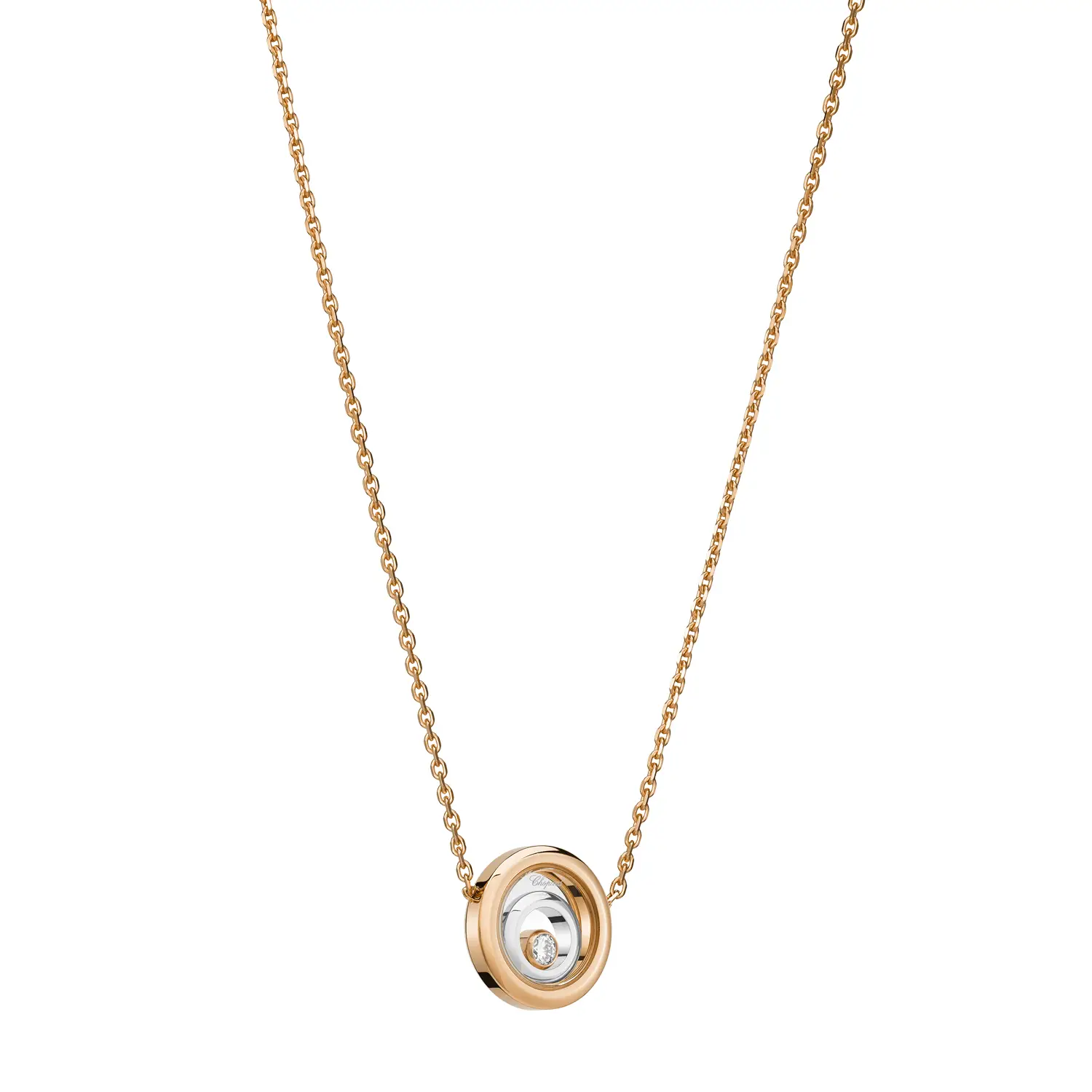 这款来自 Happy Spirit 系列的项链,将萧邦永恒的优雅与女性柔美完美融合。采用 18 K 玫瑰金与白金 精制,并镶嵌一颗 约 0.09 克拉自由旋转的钻石,每一次动作都展现出灵动闪耀的光影。圆形同心设计象征着 和谐、平衡与生命的永恒律动。