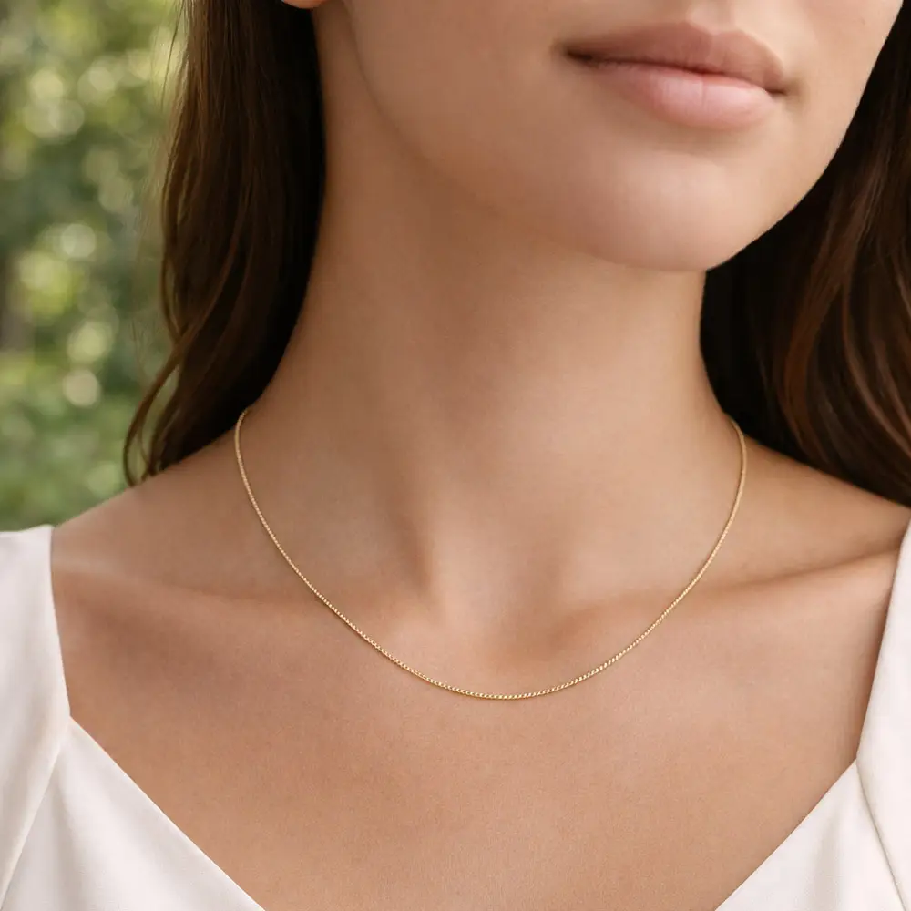 45 厘米的长度佩戴舒适,自然修饰颈部线条,1.3 毫米的宽度则赋予项链细腻而略显立体的质感。无论日常佩戴还是正式场合,都能轻松搭配其他黄金饰品,是一款兼具实用性与恒久价值的经典之选。