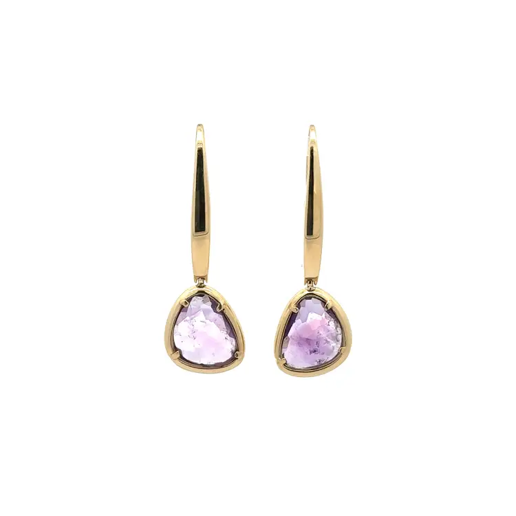 镶有紫色宝石的金色吊坠耳环