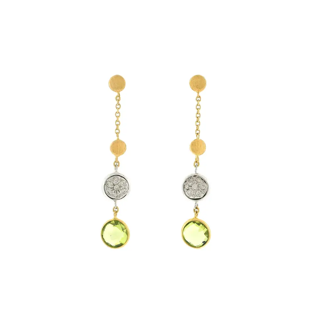 这款镶嵌绿色宝石和锆石的金色耳环既适合正式场合,也可作为日常造型的时尚点缀,是送给女性的精致奢华礼物之选。