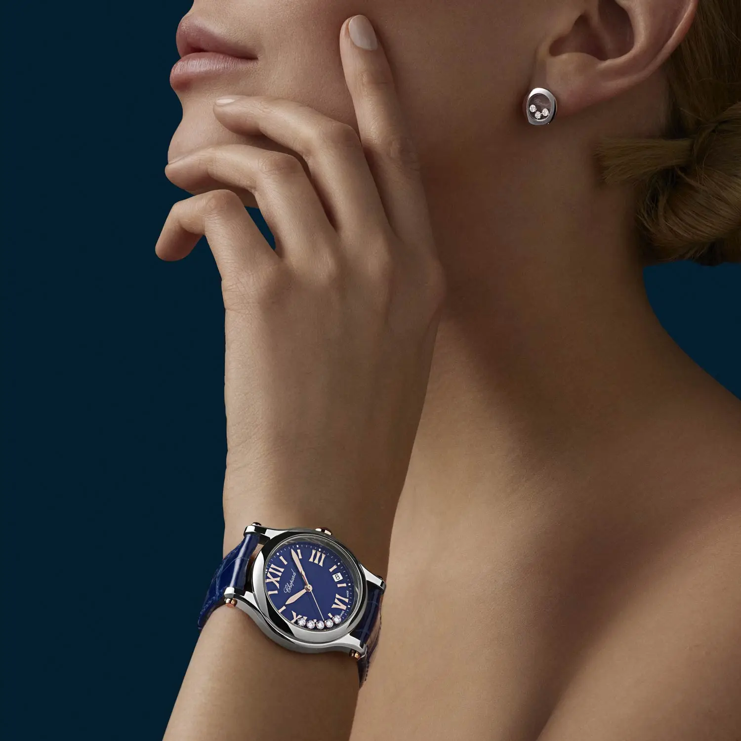 Happy Diamonds 系列是 Chopard 最著名、最具原创性的作品之一。自 1976 年推出以来,它凭借 可自由移动的钻石 闪耀世界,这些钻石被封装在两片蓝宝石水晶之间,随着每一次动作而舞动。这一突破性设计成为自由、喜悦与无限创意的象征。