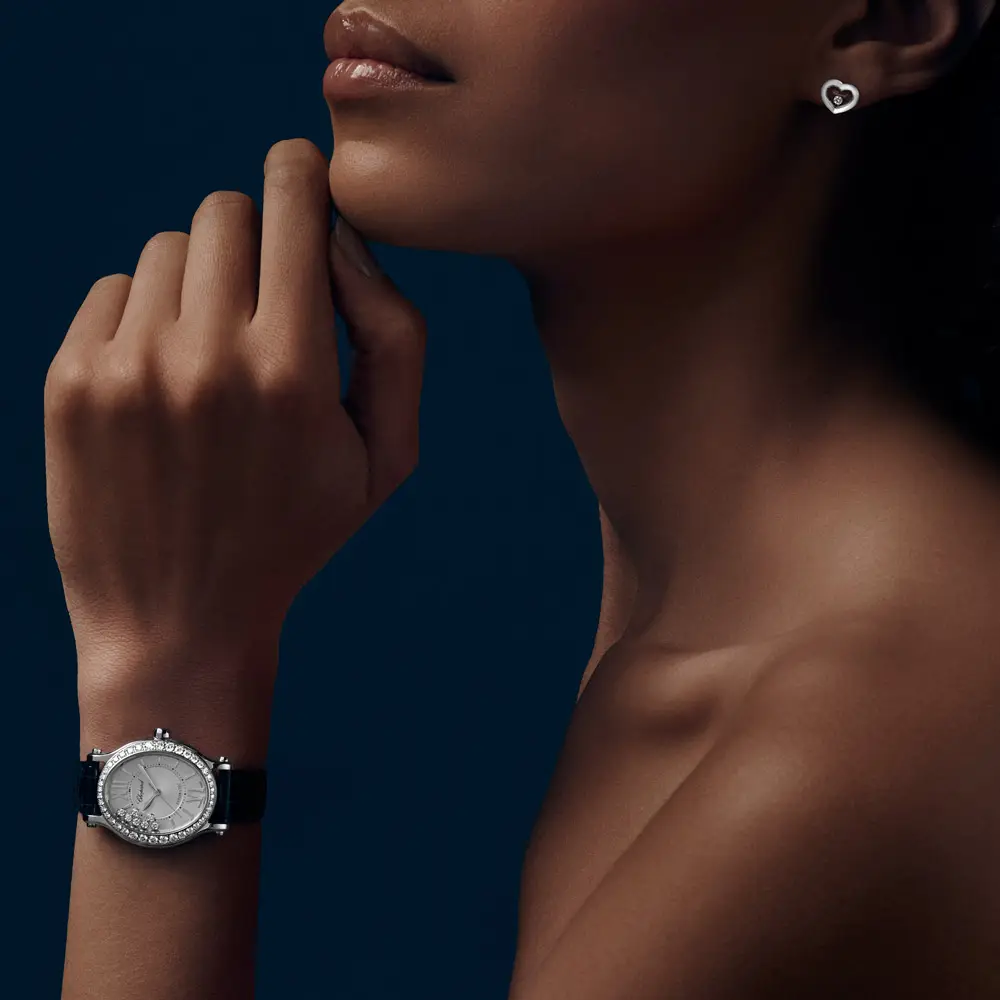 Happy Diamonds 系列是 Chopard 最著名、最具原创性的作品之一。自 1976 年推出以来,它凭借 可自由移动的钻石 闪耀世界,这些钻石被封装在两片蓝宝石水晶之间,随着每一次动作而舞动。这一突破性设计成为自由、喜悦与无限创意的象征。