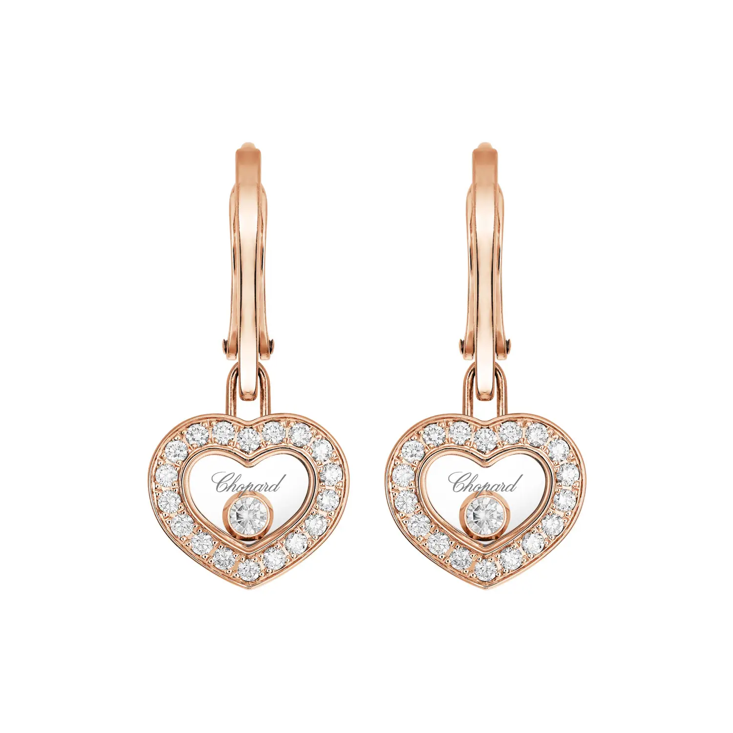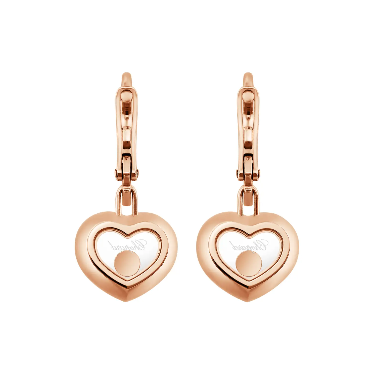 萧邦 Chopard Happy Diamonds Icons 83A054-5401 耳环展现 灵动之美与快乐精神,是 Happy Diamonds 系列的经典之作。采用 18K 道德玫瑰金 打造,镶嵌 可自由转动的钻石,在两层蓝宝石玻璃之间闪耀光芒。钻石总重约 0.38 克拉,璀璨却不张扬。
