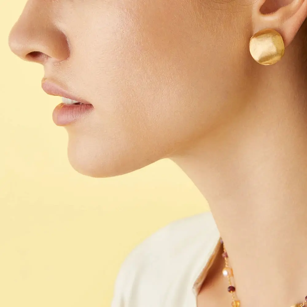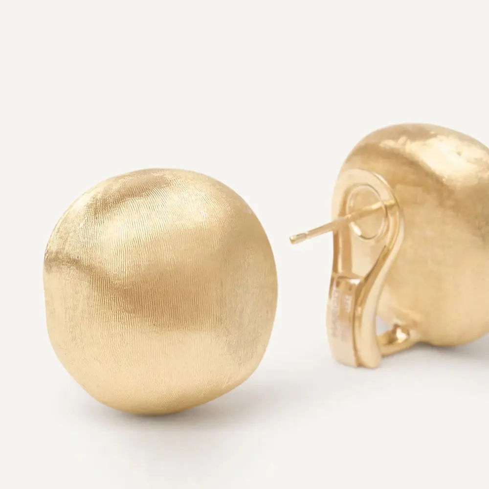 Marco Bicego Africa OB919 Y 耳环精妙融合光泽与质感。它们采用 18K 黄色黄金 (750/1000) 制作,表面运用 抛光 & 哑光混合处理,营造出层次感。采用 带榫扣式 (clip with post) 设计固定,佩戴稳妥。