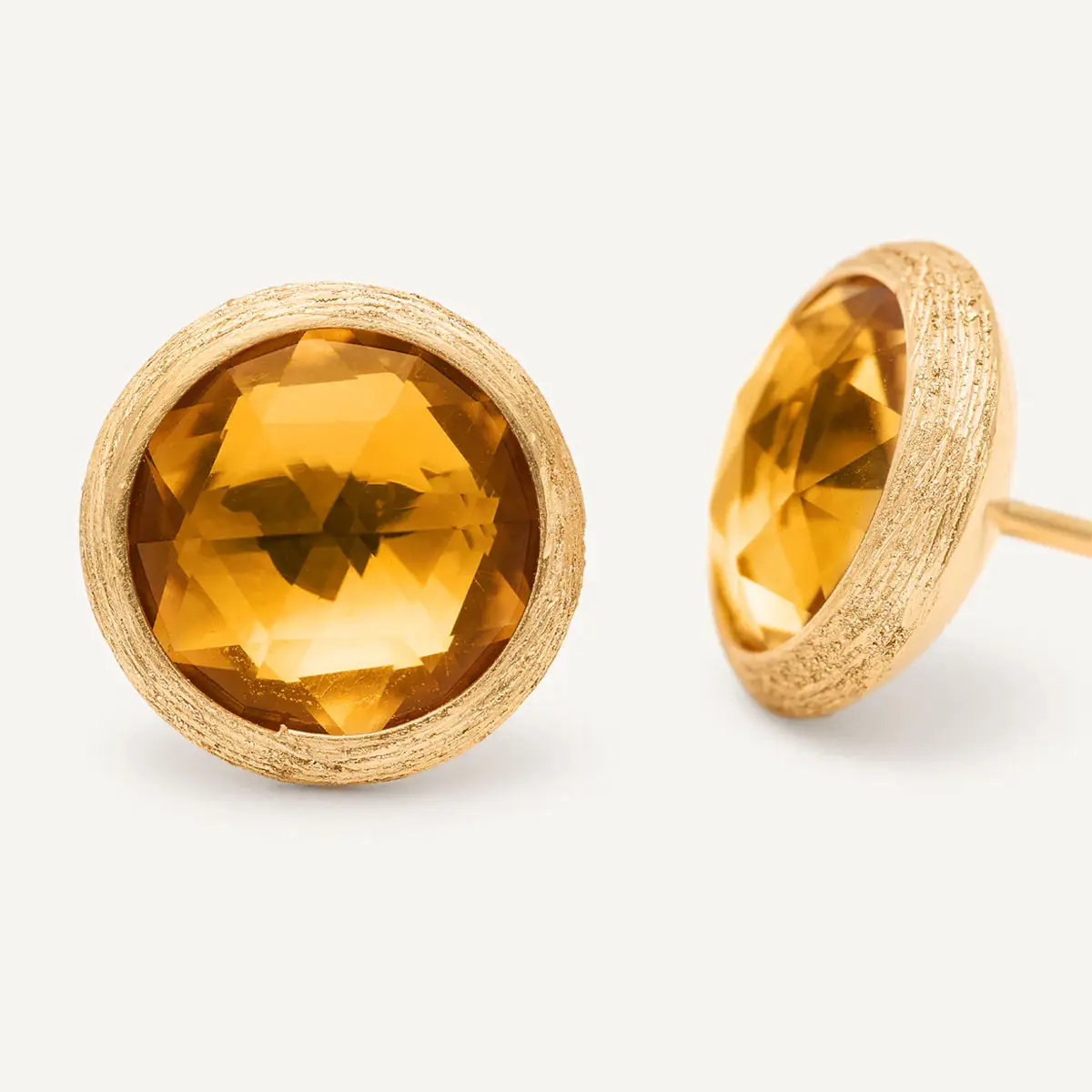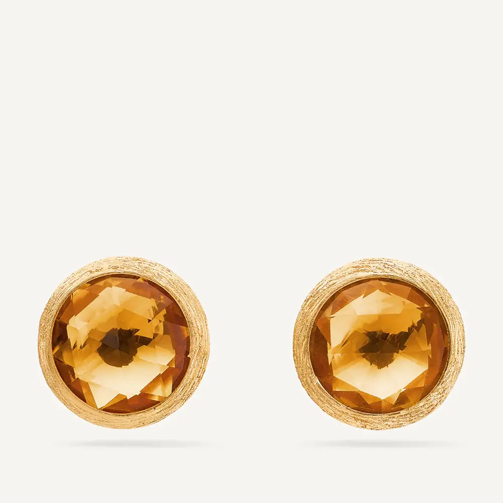 Marco Bicego Jaipur OB957 QG01 Y (KBS0104) 耳环以温暖宝石点缀和精致造型吸引目光。它们采用 18K 黄色黄金 (750/1000),表面为 哑光处理 (matte finish),赋予金属柔和、低调的质感。采用 针扣 (puzeta) 固定,佩戴自然舒适。