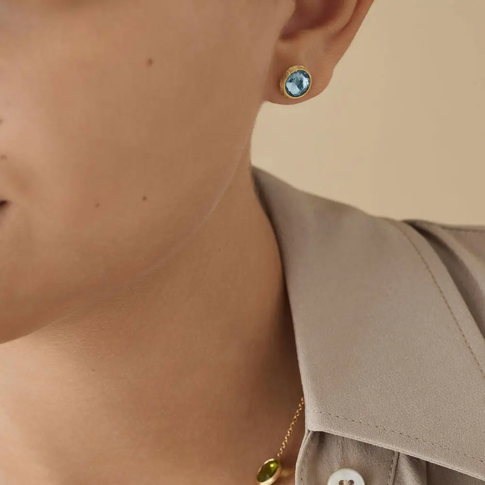 Marco Bicego Jaipur OB957 TP01 Y-02 耳环融合宁静优雅与精致色彩点缀。它们采用 18K 黄色黄金 (750/1000) 制造,并配有 抛光 & 哑光 表面处理,赋予材质层次和微妙对比。耳环采用 针扣 (puzeta) 固定,佩戴稳固舒适。